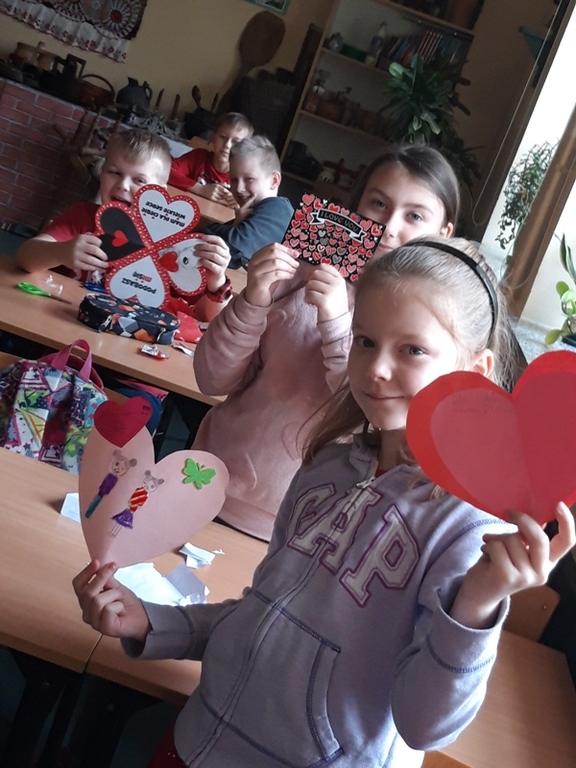 Obchody Święta Zakochanych to już tradycja naszej szkoły. 12 lutego prężnie zaczęła działać walentynkowa poczta. Uczniowie przygotowali specjalną skrzynkę, do której można było wrzucać kartki dla swojego wybranka lub wybranki. Poczta cieszyła się ogromną popularnością zwłaszcza wśród młodszych uczniów. Wiele kartek było wykonanych własnoręcznie. Samorząd Uczniowski z okazji Walentynek zorganizował również dyskotekę, podczas której nie zabrakło konkursów i zabaw. Uczniowie mocno dopingowali rywalizujące pary, a musiały one wykazać się sporymi umiejętnościami. Wszyscy uczniowie obdarowani zostali słodkimi upominkami. Piątek dostarczył także wiele emocji. Każdy czekał na swoją walentynkę, a nauczyciele i pracownicy szkoły otrzymali upieczone przez uczniów muffinki.