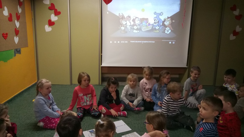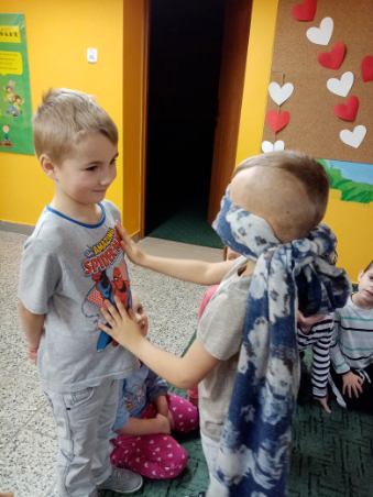 Dzieci obejrzały bajkę ,,Załoga naprzód’’ – przedstawiającą niepełnosprawność widzianą oczami dzieci. Animacja ta jest rodzajem podróży, w której dzieci, wcielając się w różne postaci zwierząt, wykorzystują swoje talenty, aby osiągnąć cel wyprawy. Następnie rozmawialiśmy na temat różnych niepełnosprawności. Dzieci podczas zabaw poznawały jak czują się osoby niepełnosprawne: stały na jednej nodze, rozpoznawały kolegów z zamkniętymi oczami. Bawiły się w ,,Magiczne słowa i gesty’’- kalambury i zastanawiały się czy możliwa jest komunikacja bez użycia mowy.