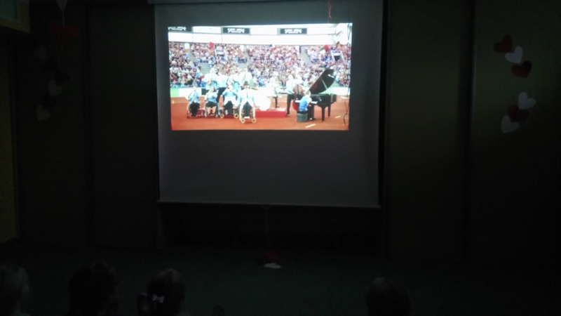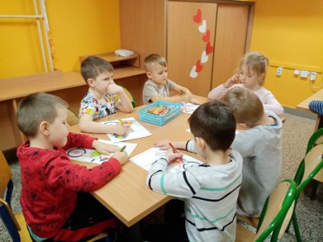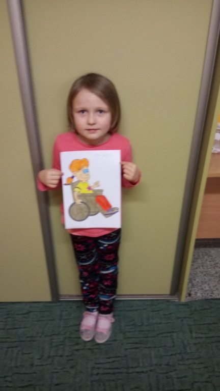 Następnie dzieci obejrzały film edukacyjny ,,Inny –znaczy lepszy’’-o niezwykłych dokonaniach osób niepełnosprawnych. Wykonały również pracę plastyczną.