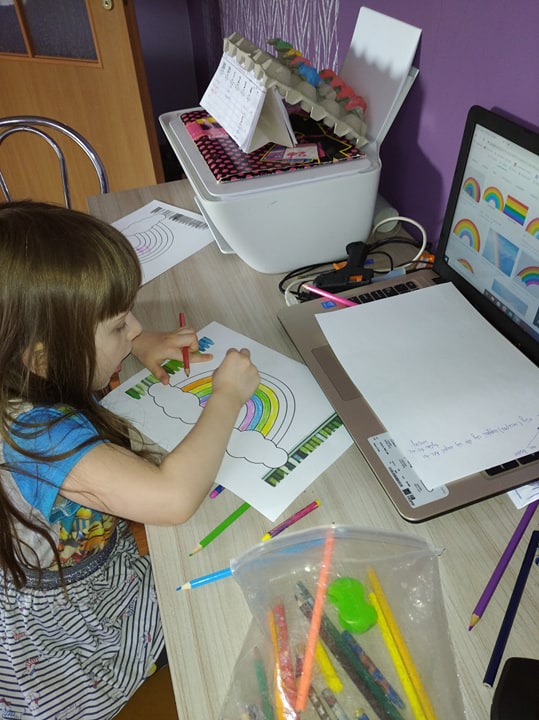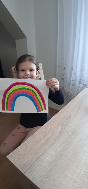 Grupa 3-4 latków nadal zdalnie pracuje. Dzieci wykonują nie tylko zaproponowane zadania lecz tworzą własne kompozycje wykazując się przy tym własną inicjatywą twórczą. Dnia 3 kwietnia w Dzień Tęczy, przedszkolaki poprzez wykonanie prac plastycznych zjednoczyły się z całym światem dając nadzieję, że wkrótce wszystko znów będzie dobrze.