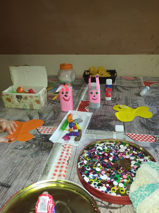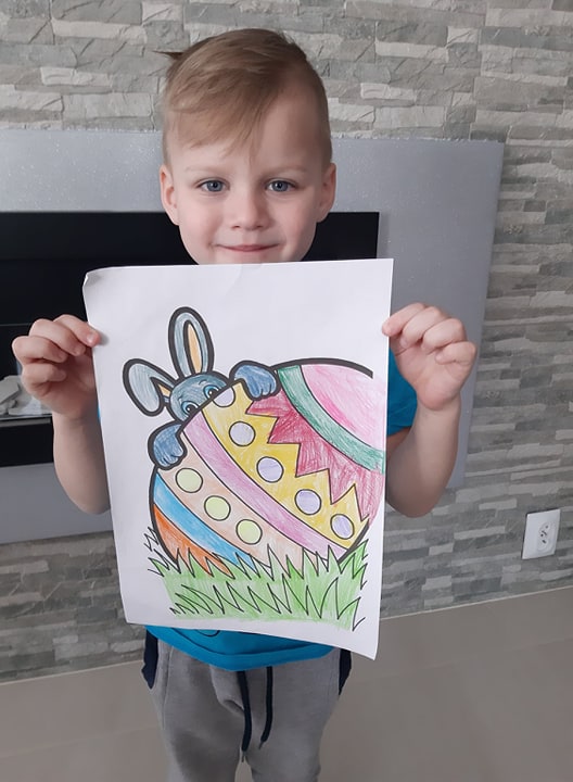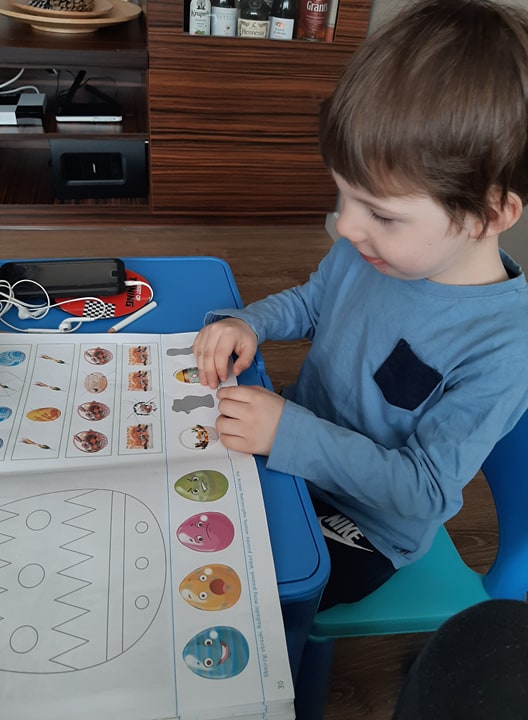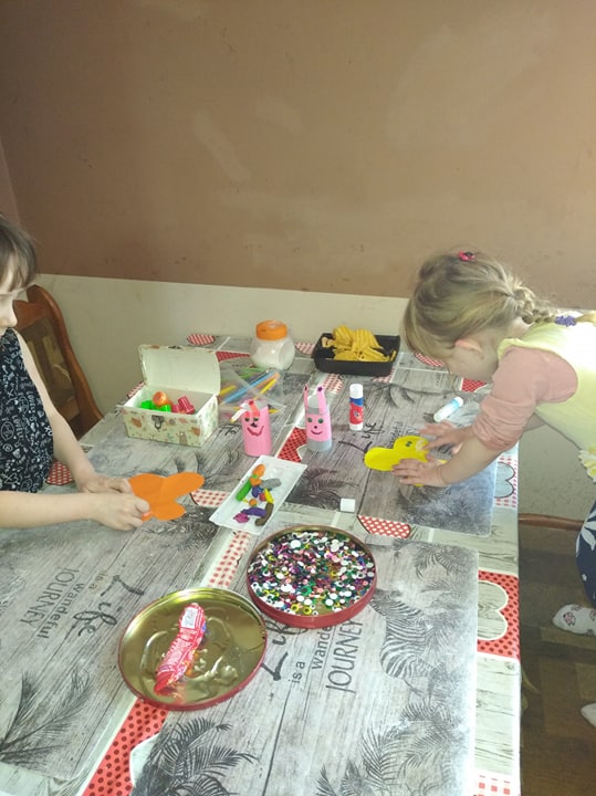 3-4 latki przed okresem świątecznym nie tylko pomagały w pracach domowych, lecz również pilnie pracowały zdalnie. Chętnie kolorowały oraz wykonywały prace plastyczne, które przyozdobiły świąteczny stól.