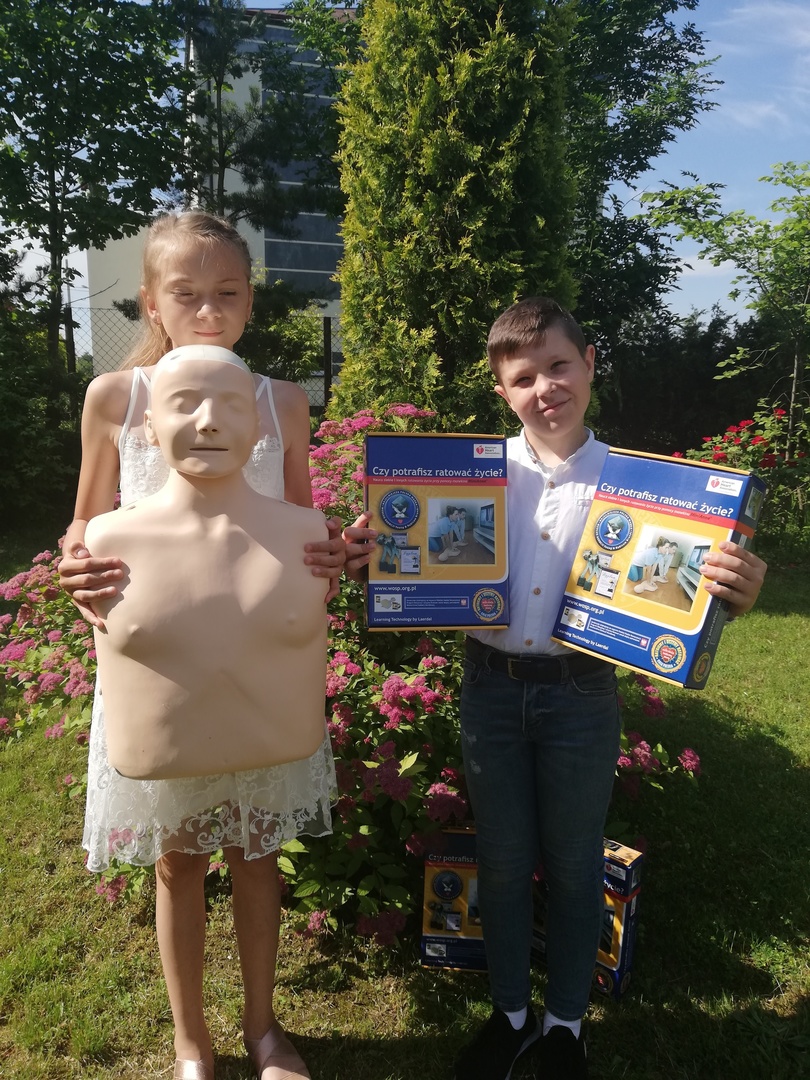 Szkoła otrzymała podziękowanie za udział w konkursie, a w ramach nagrody uczniom przekazano fantomy do nauki resuscytacji.