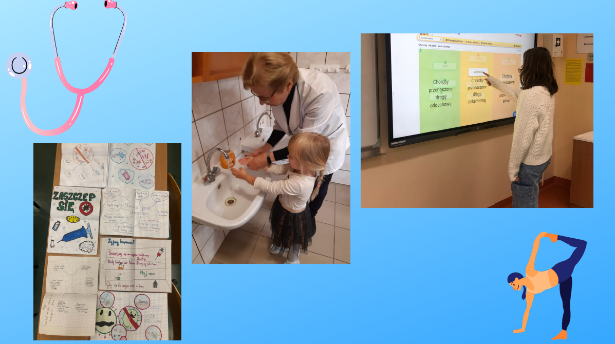 Dzieci z młodszych klas przygotowały prace plastyczne, zostały przeprowadzone zajęcia dotyczące higieny ciała. Uczniowie obejrzeli również filmy edukacyjne na temat chorób zakaźnych i szczepień ochronnych.