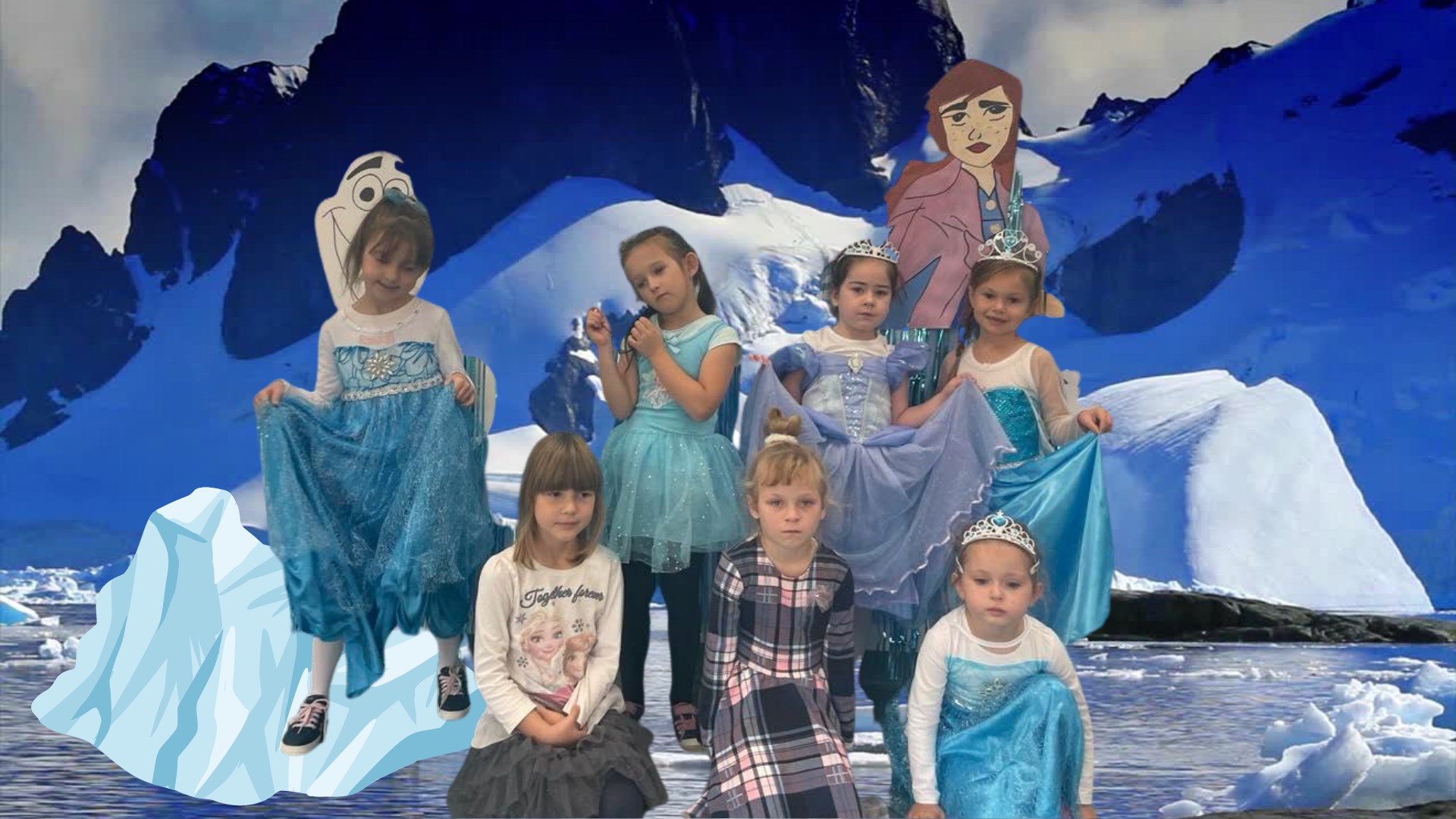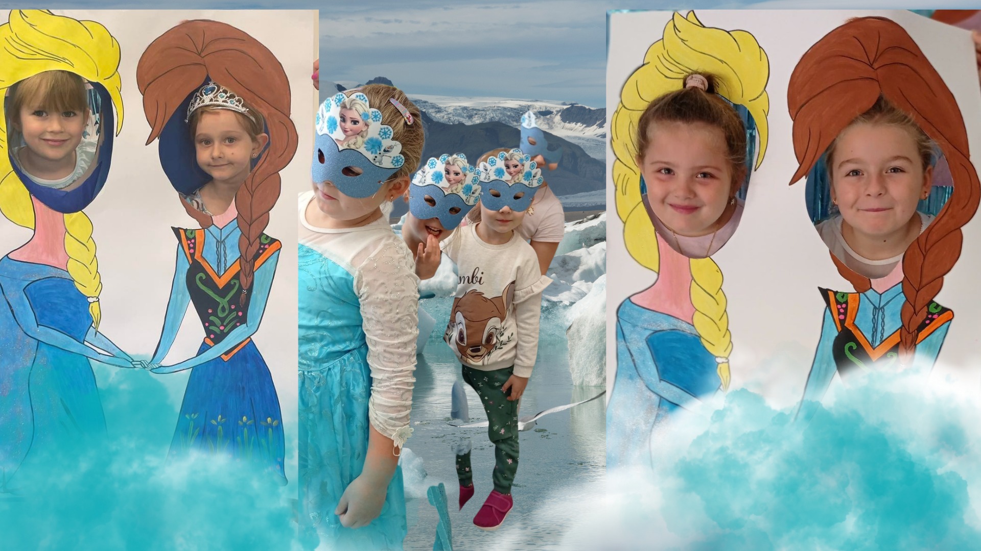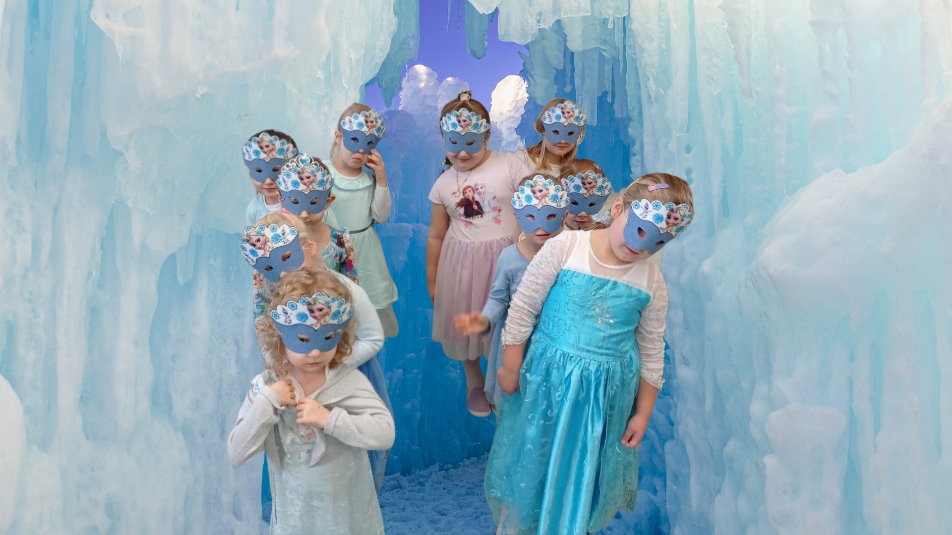w scenerii z Krainy Lodu gdzie mogły zamienić się w ukochane bohaterki Elsę i Annę.