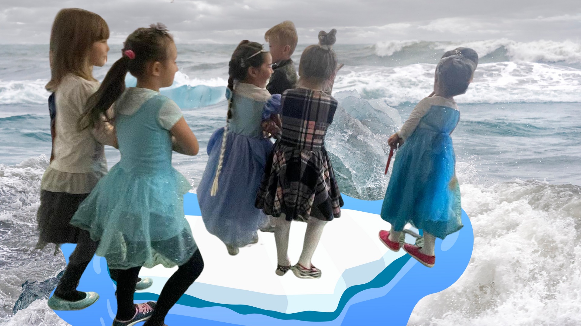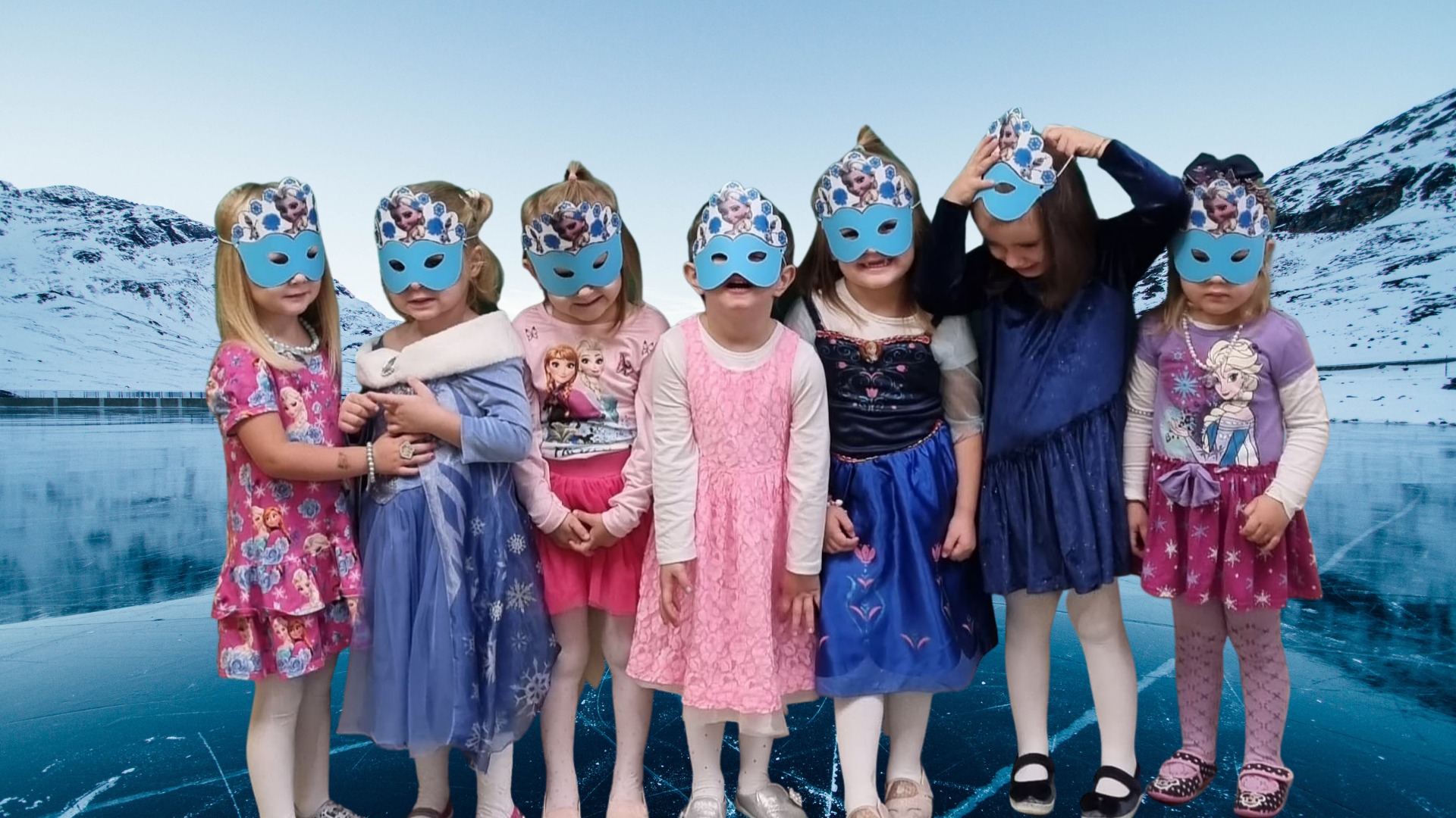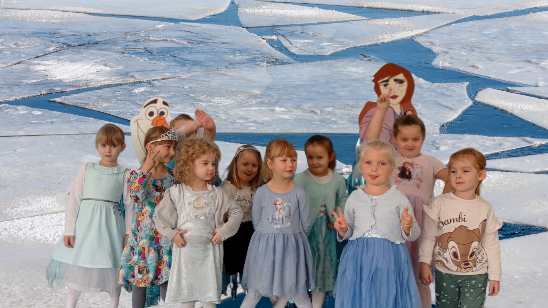 w scenerii z Krainy Lodu gdzie mogły zamienić się w ukochane bohaterki Elsę i Annę.