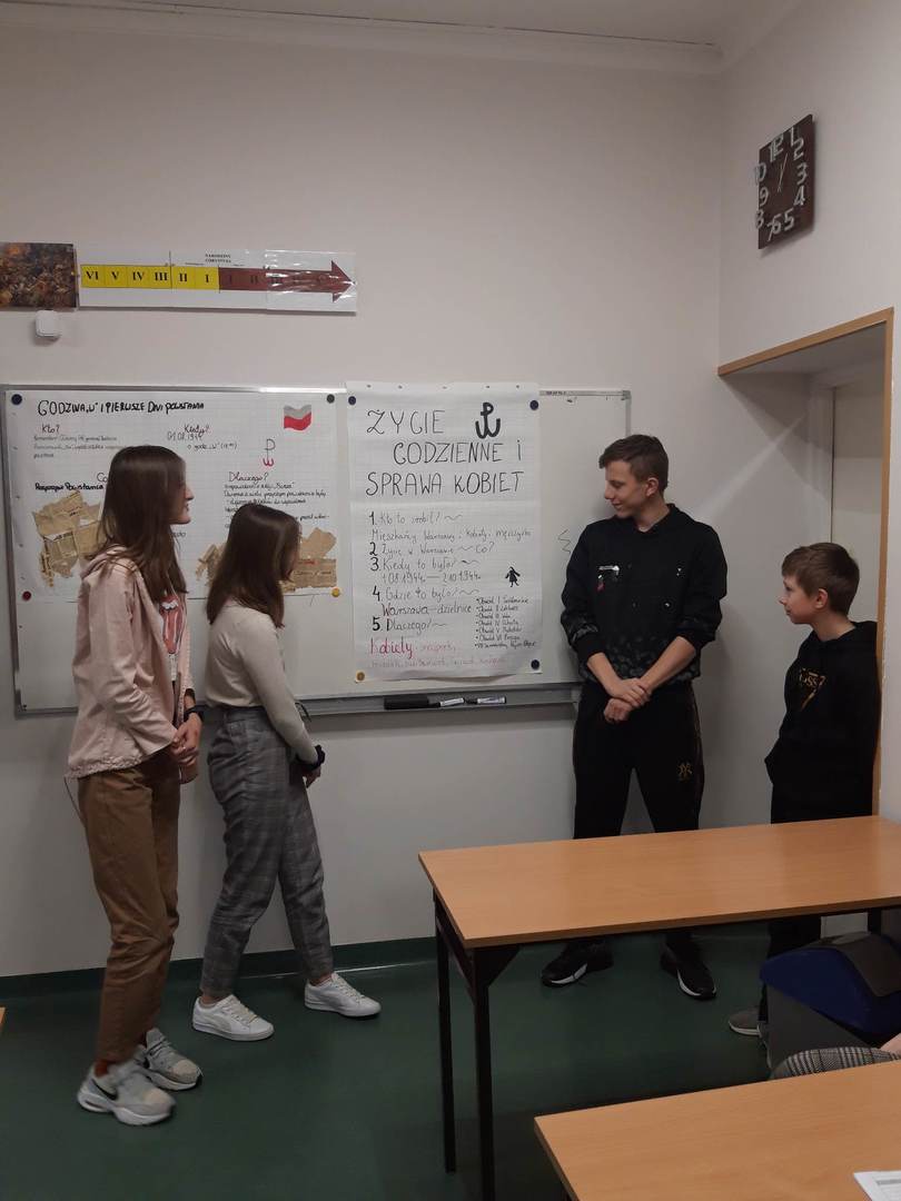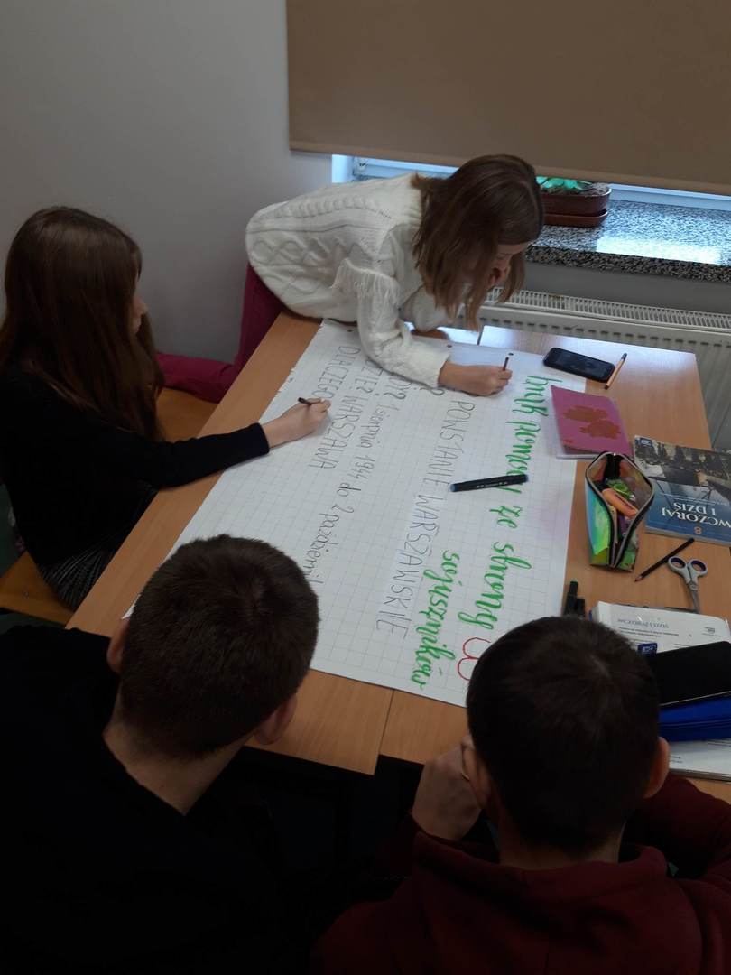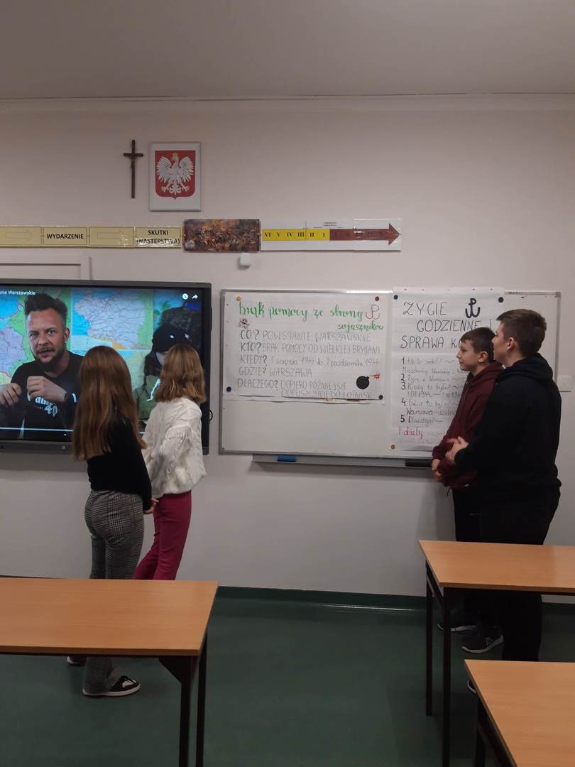 Uczniowie na lekcjach historii zapoznali się z wydarzeniami z tego okresu oraz dramatem uczestników powstania, żołnierzy oraz ludności cywilnej. Tworzyli własne infografiki. Chętni uczniowie zamieścili swoje wpisy z podziękowaniami Powstańcom jako dowody uznania, pamięci i dumy na stronie dumnizpowstancow.pl.