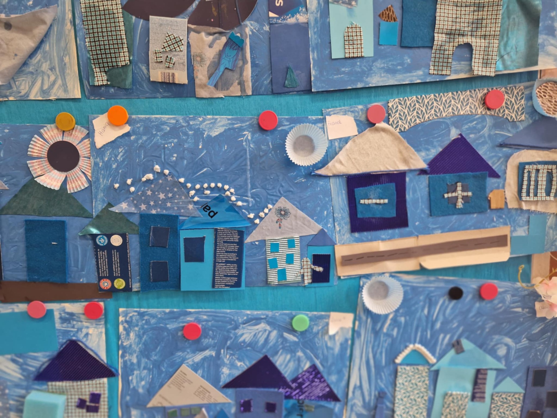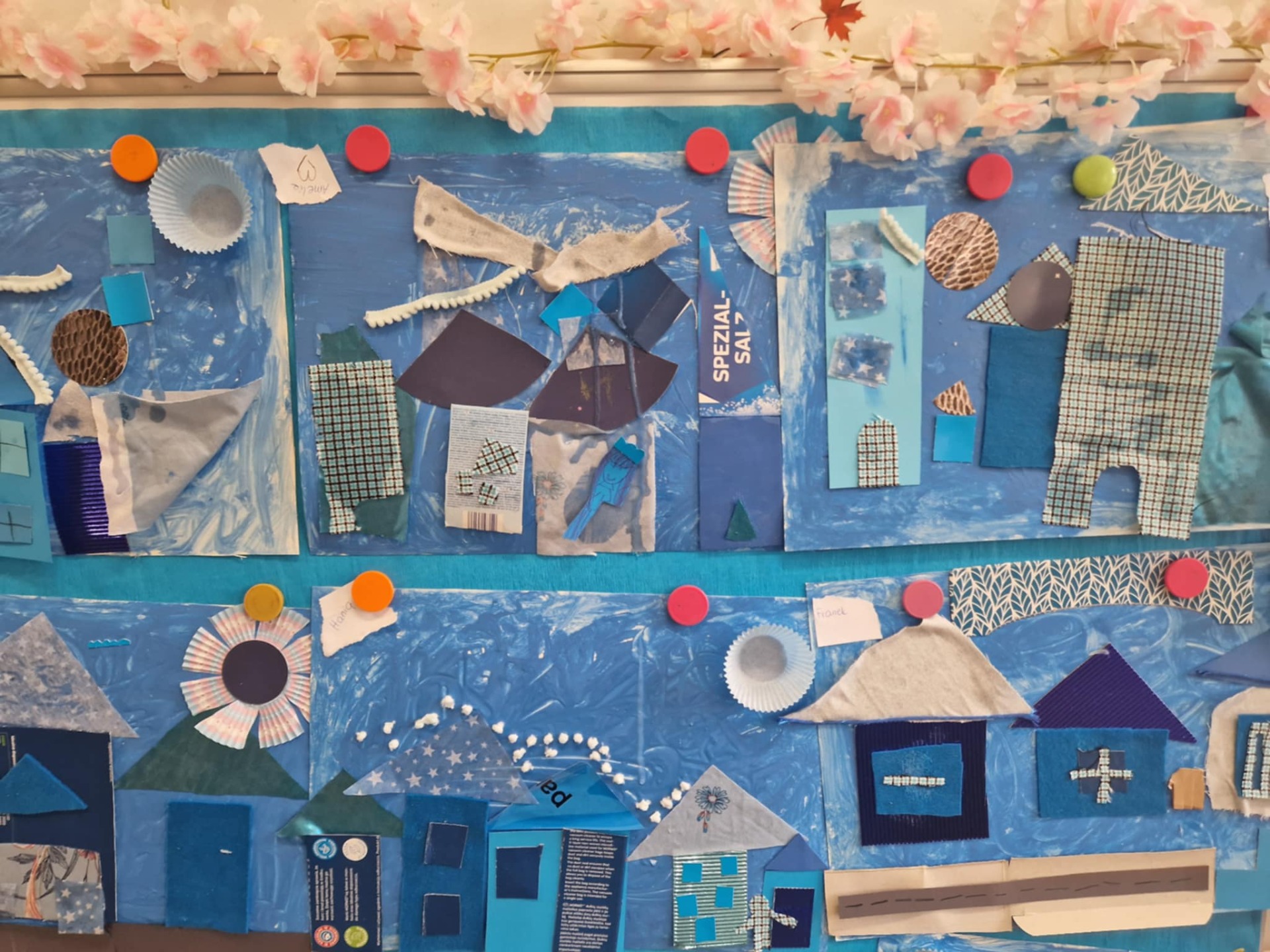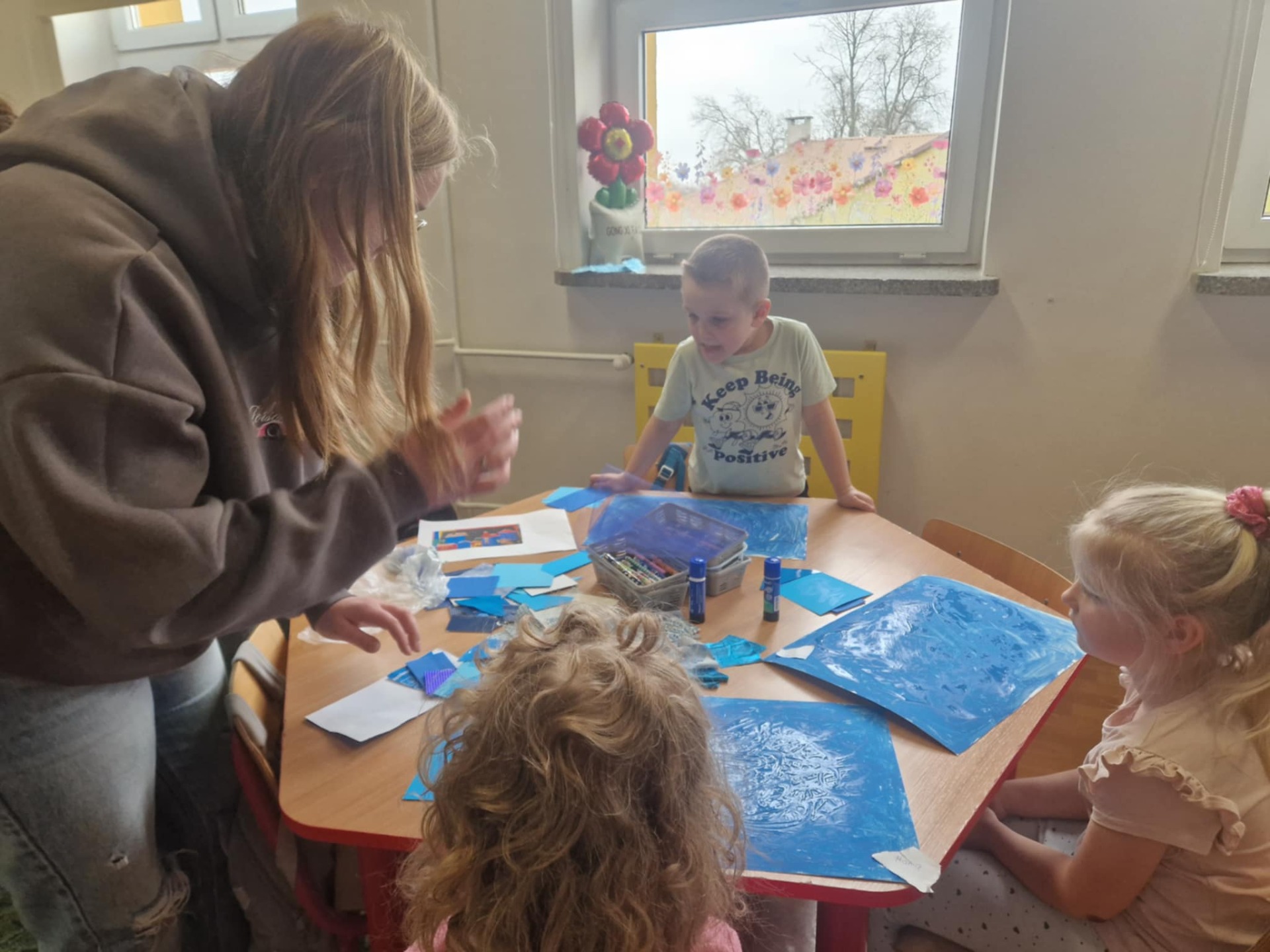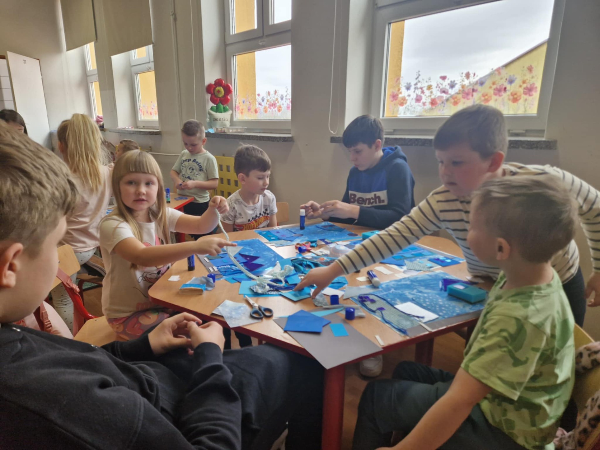 Uczniowie przygotowali różnorodne materiały plastyczne, takie jak papier kolorowy, farby, kredki, a także materiały recyklingowe. Dzieci z entuzjazmem przystąpiły do pracy, tworząc domki, drzewa, postacie i inne elementy, które miały znaleźć się w ich wizji niebieskiego miasteczka
