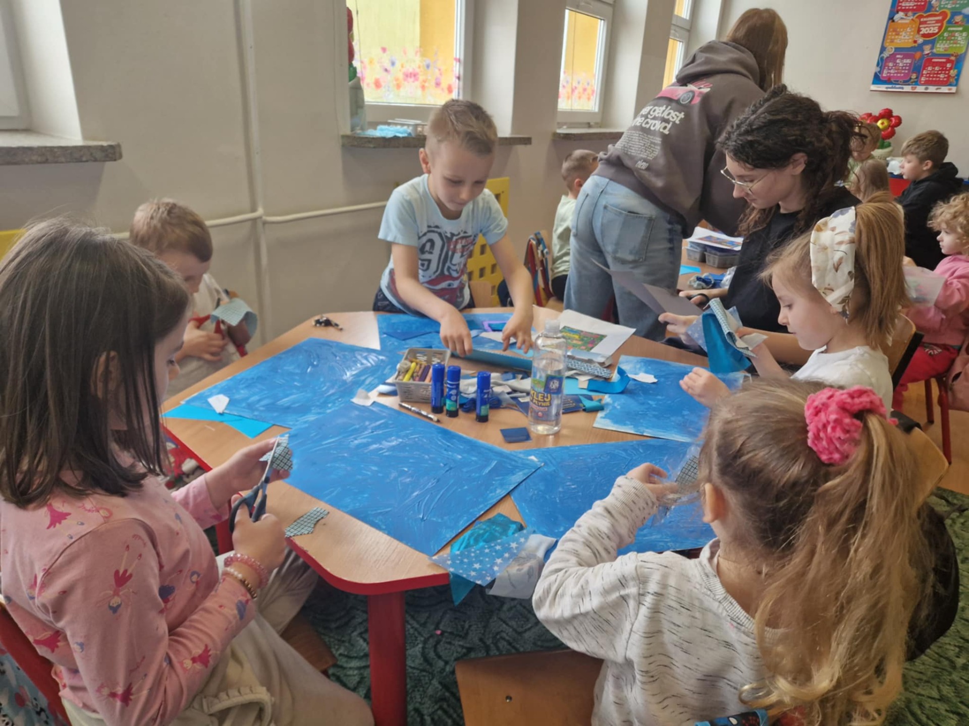 Odbyły się one w miłej i twórczej atmosferze, a ich celem było rozwijanie kreatywności oraz umiejętności manualnych najmłodszych. Warsztaty rozpoczęły się od krótkiej prezentacji, w której uczniowie klasy VIII przedstawili koncepcję „Niebieskiego Miasteczka”.