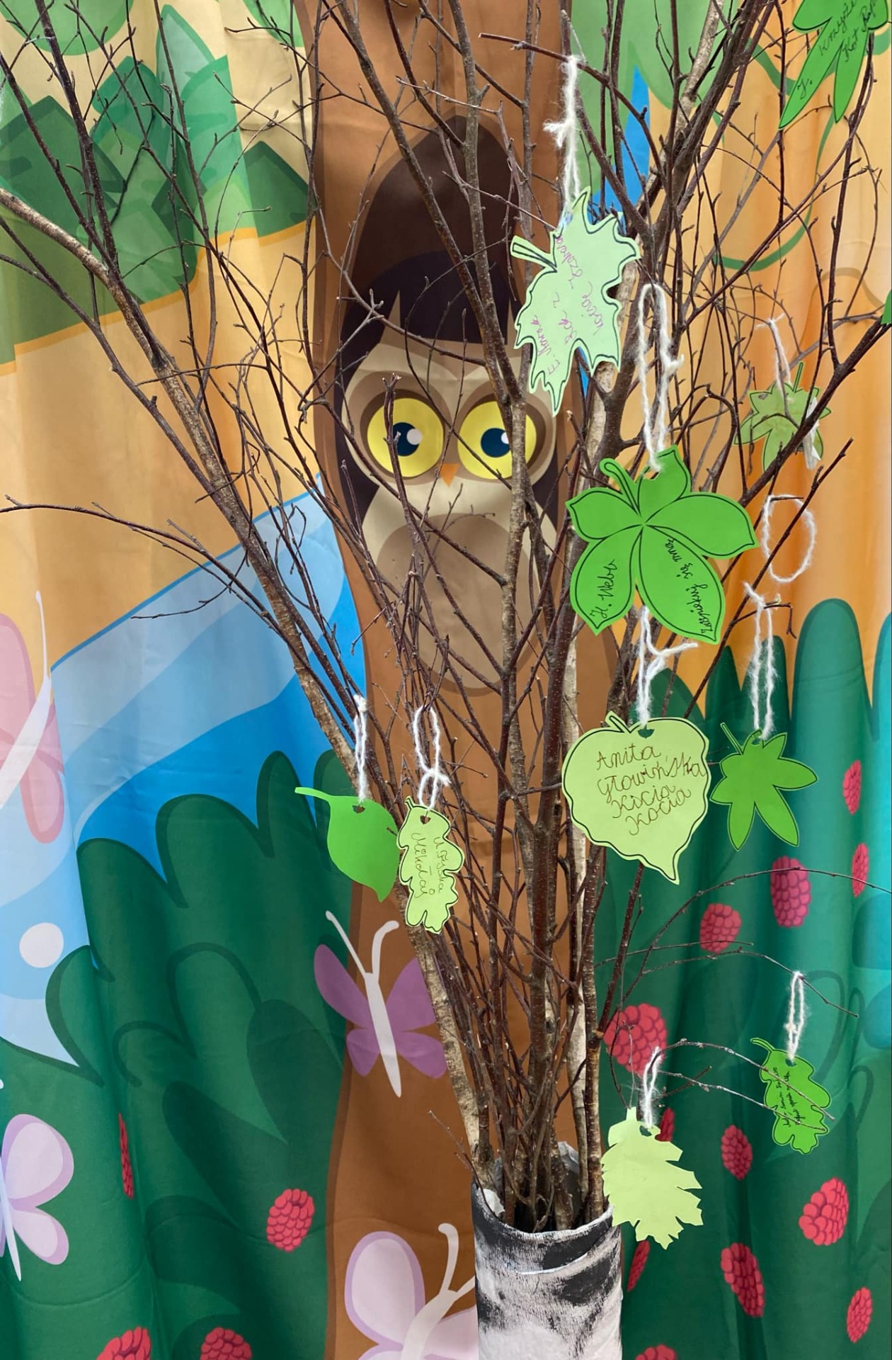 Aby dodać naszej akcji wiosennego klimatu, stworzyliśmy w szkolnej bibliotece literackie drzewo poleceń. Na jego listkach zapisujemy tytuły i autorów książek, które warto przeczytać tej wiosny.