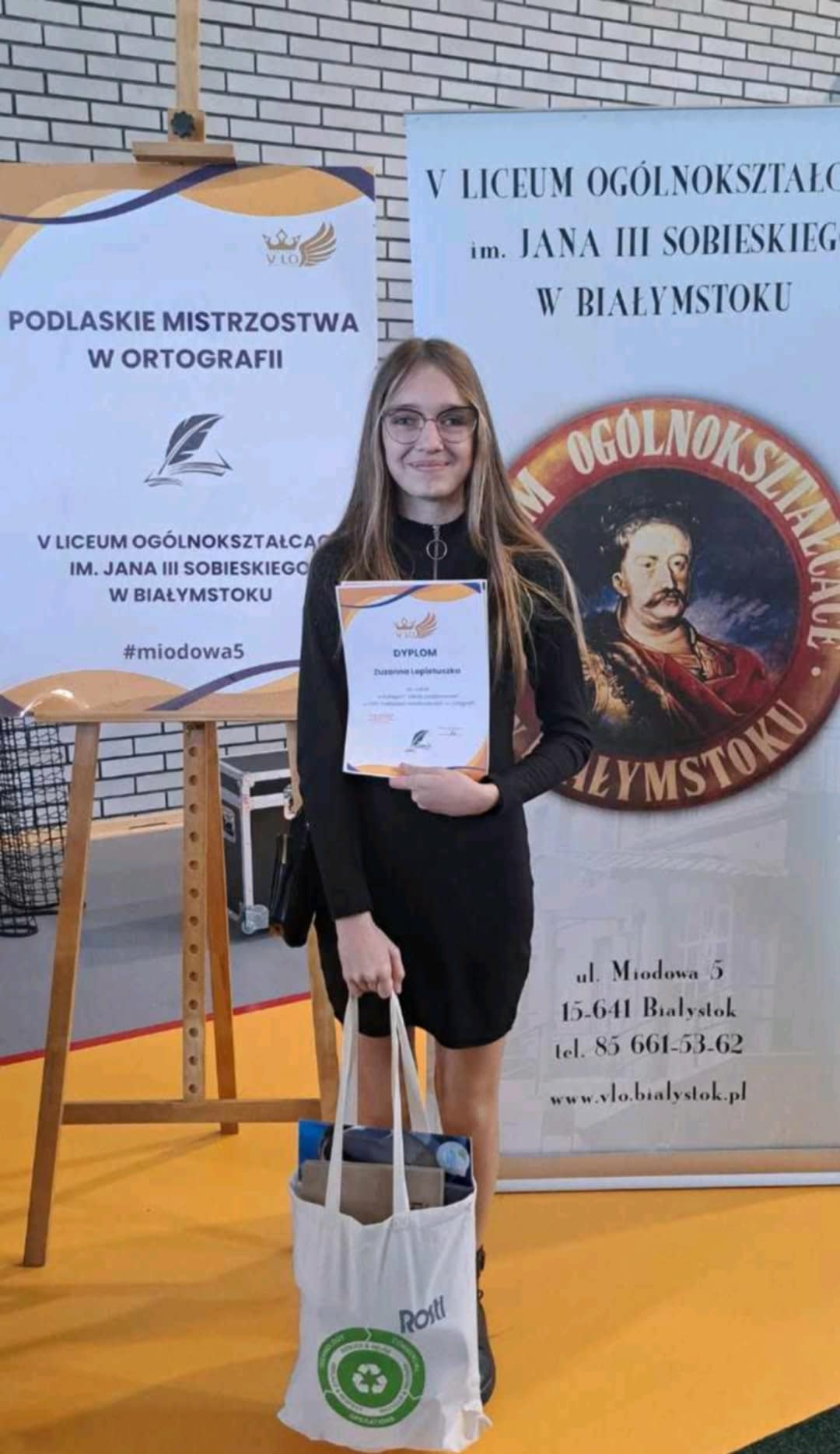Z dumą informujemy, że nasza uczennica Zuzanna Lepietuszko z kl. VIII, wzięła udział w Podlaskich Mistrzostwach w Ortografii i zajęła III miejsce w kategorii szkół podstawowych.