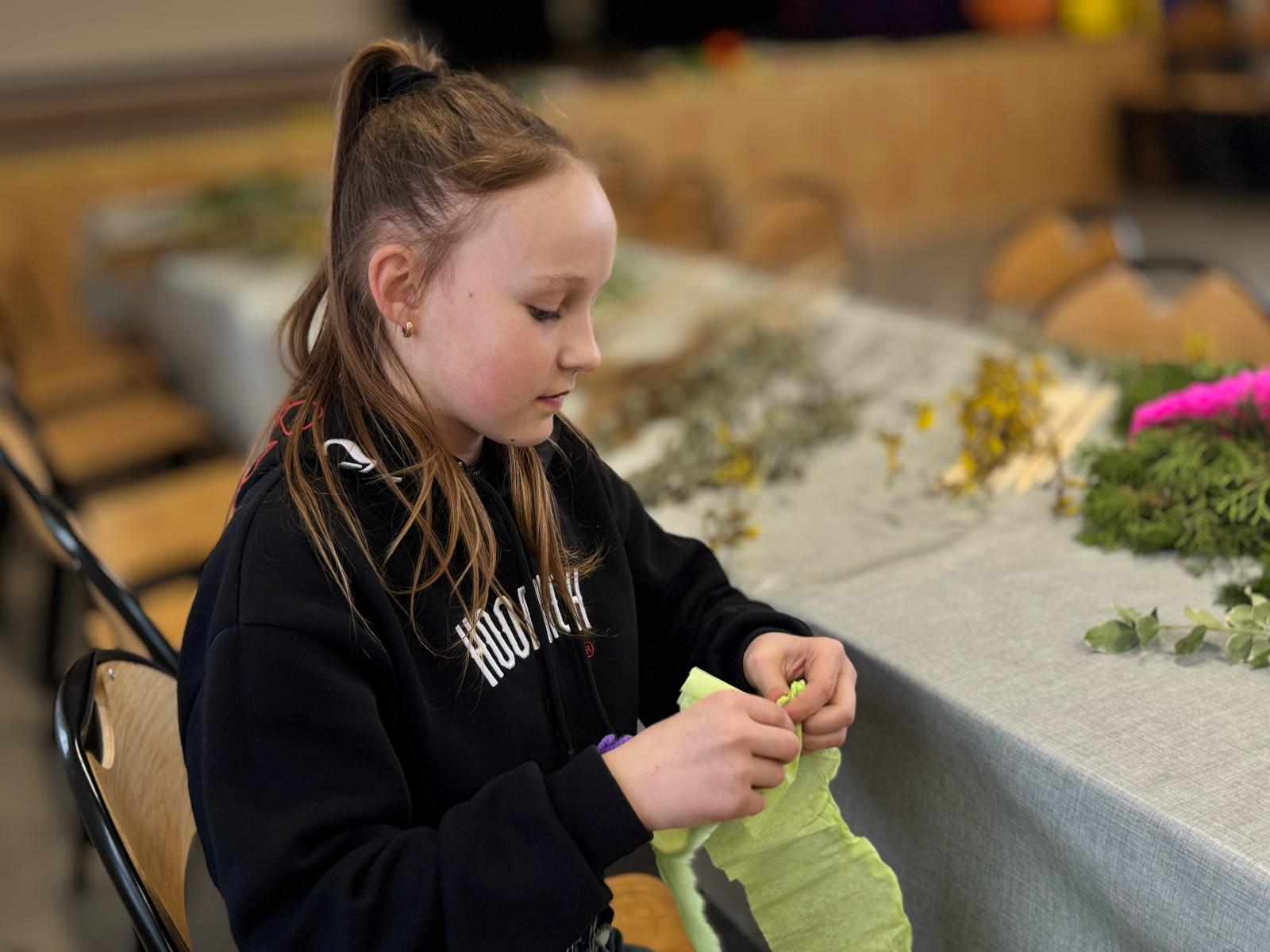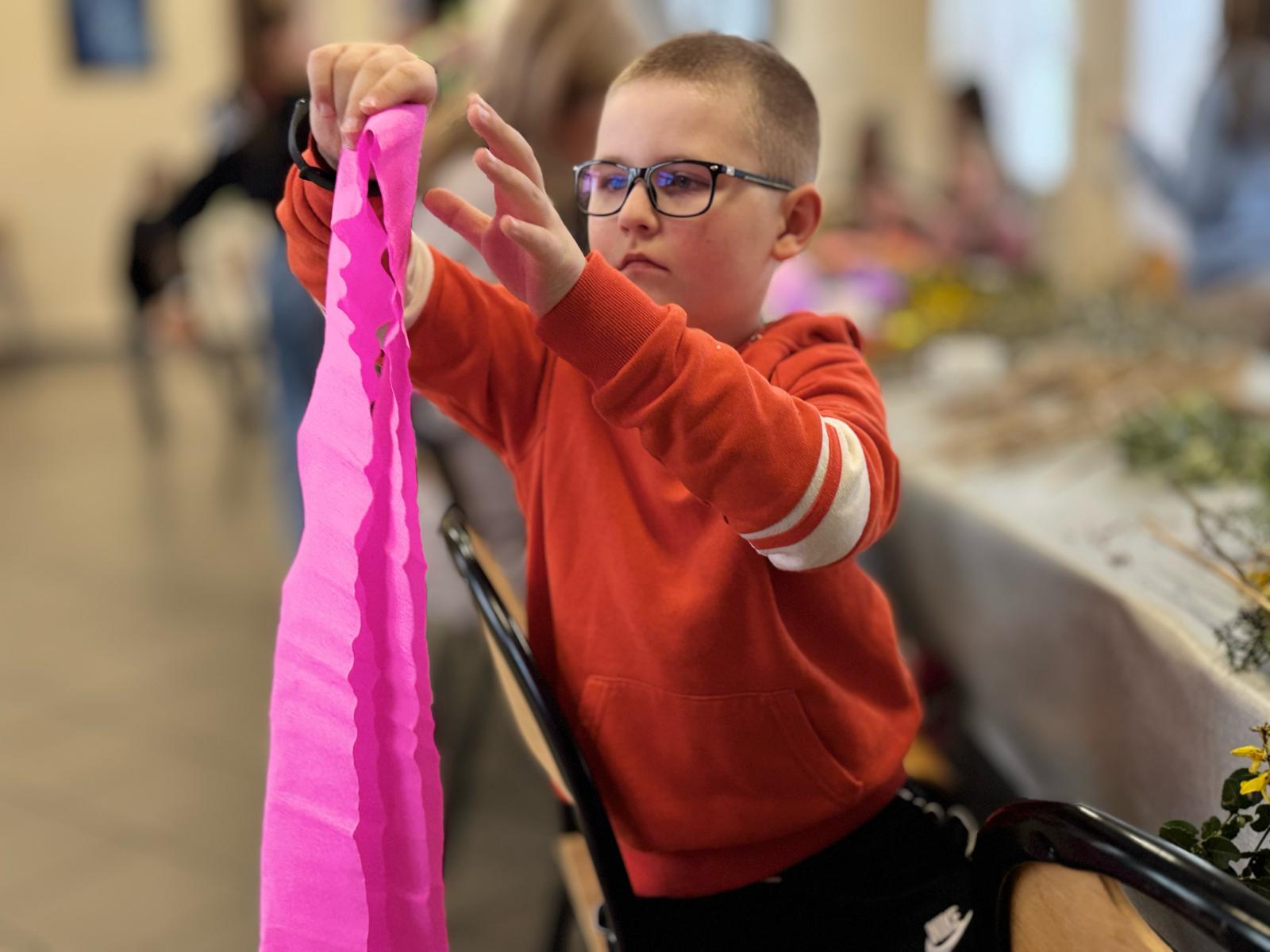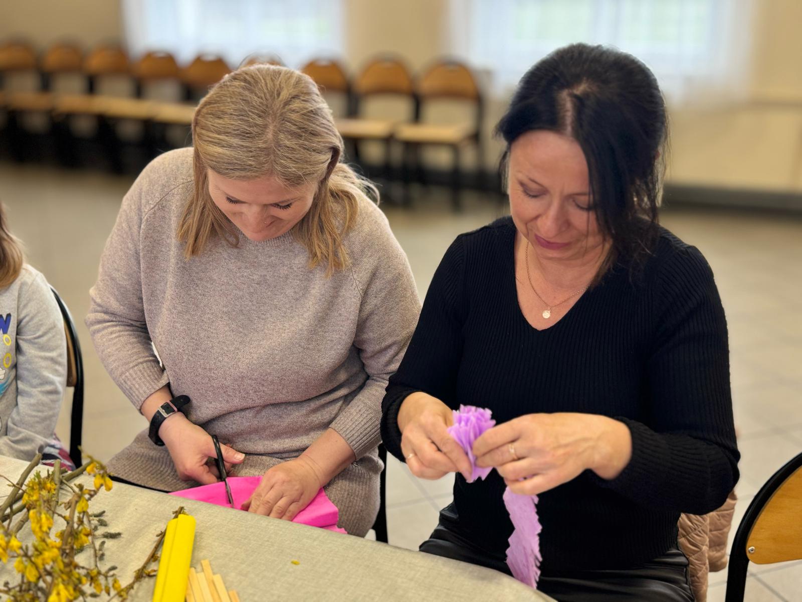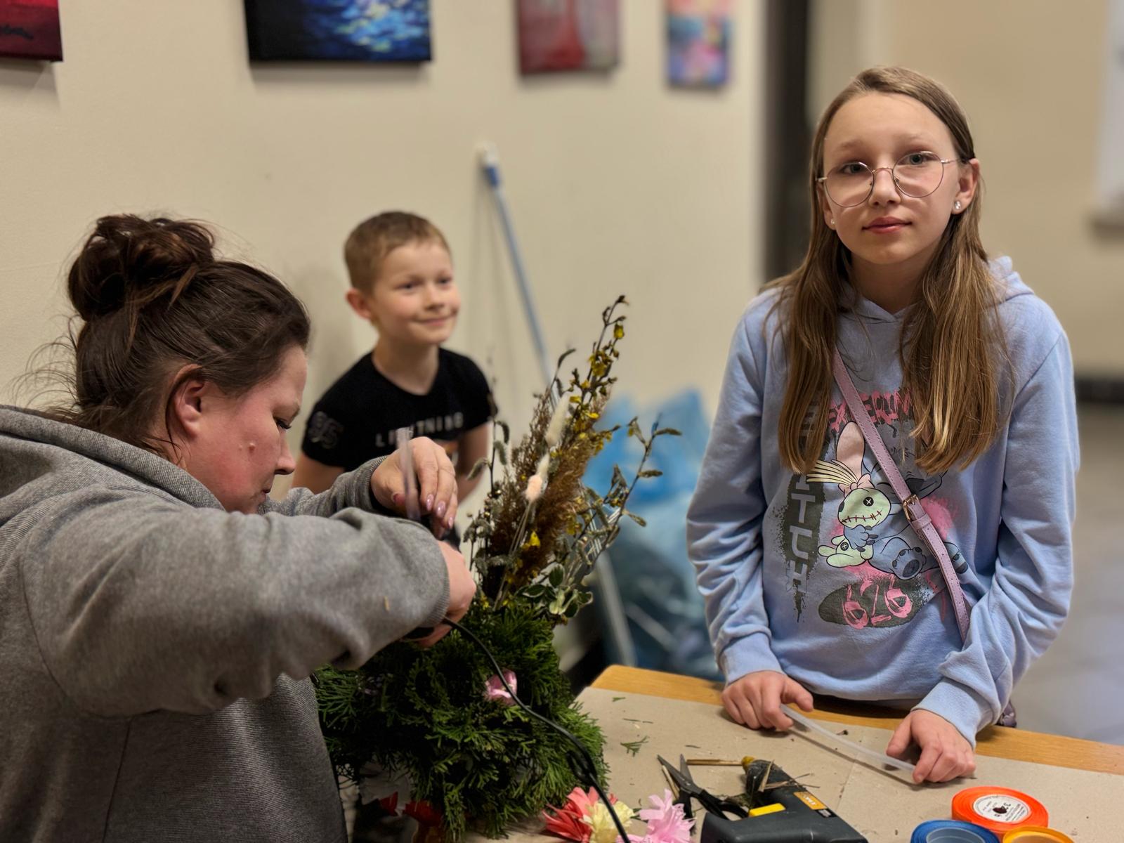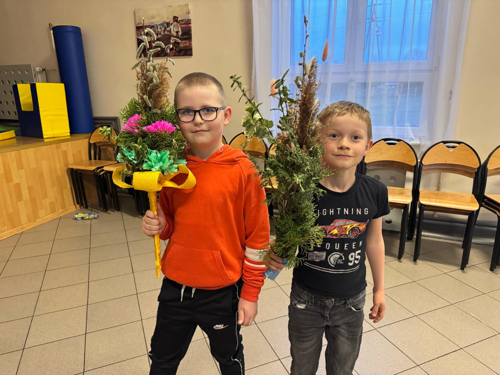 Pod czujnym okiem pani Beaty, która z pasją wprowadzała nas w tajniki tej pięknej tradycji, stworzyliśmy palmy zgodne z wielkanocnym zwyczajem. Wykorzystaliśmy naturalne materiały: bukszpan, suche trawy, puszystą trzcinę, bazie, gałązki tui, a także kolorowe wstążki i własnoręcznie wykonane kwiaty z krepiny i bibuły.