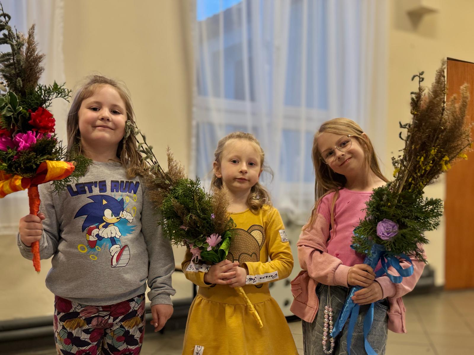Efektem naszej pracy były prawdziwe dzieła sztuki – barwne, pełne detali palmy, które z dumą zaprezentujemy podczas Niedzieli Palmowej.