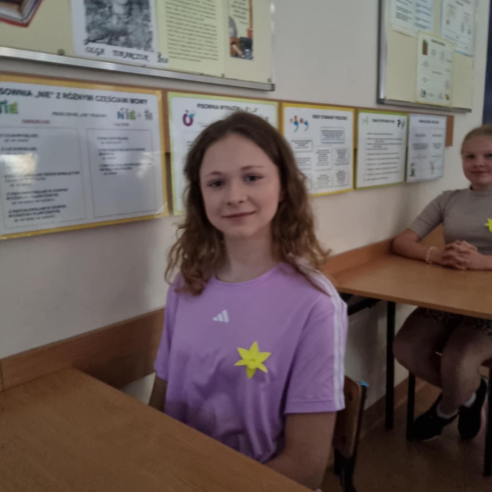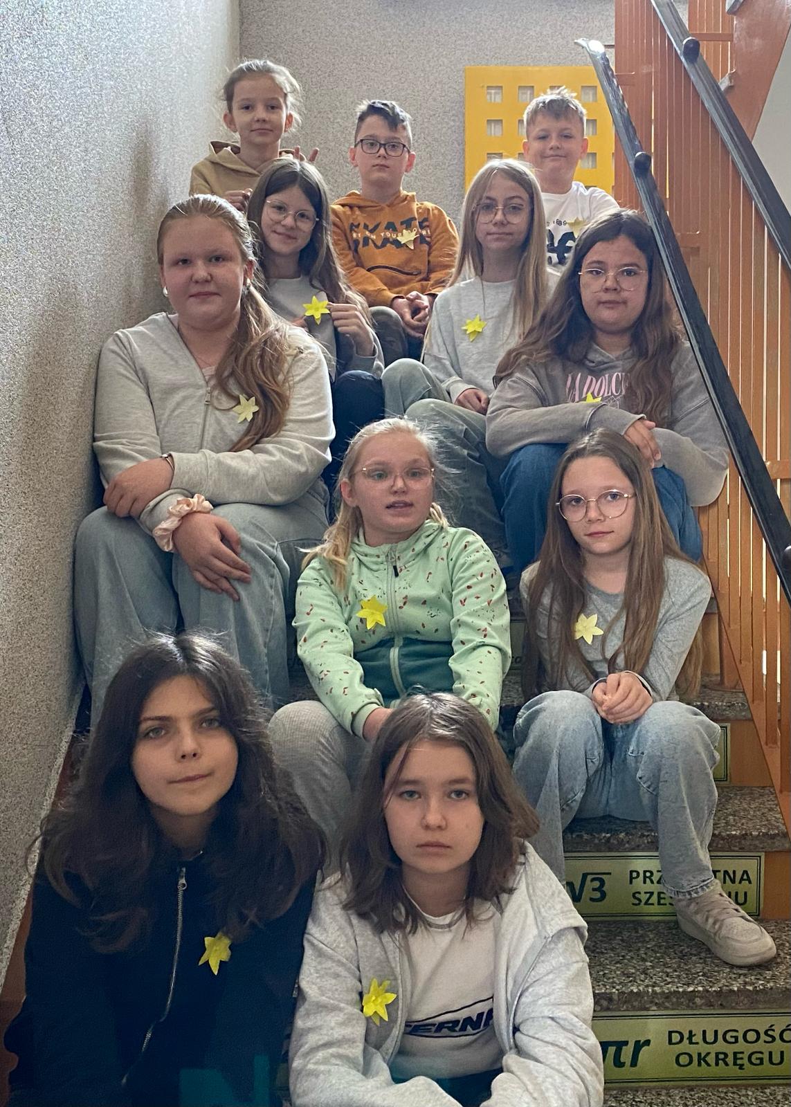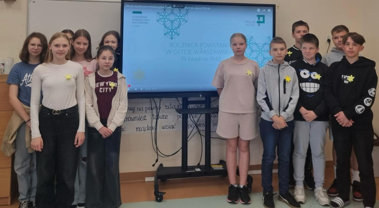 Przygotowaliśmy i przypięliśmy sobie papierowe żonkile – symbol pamięci o bohaterach powstania.