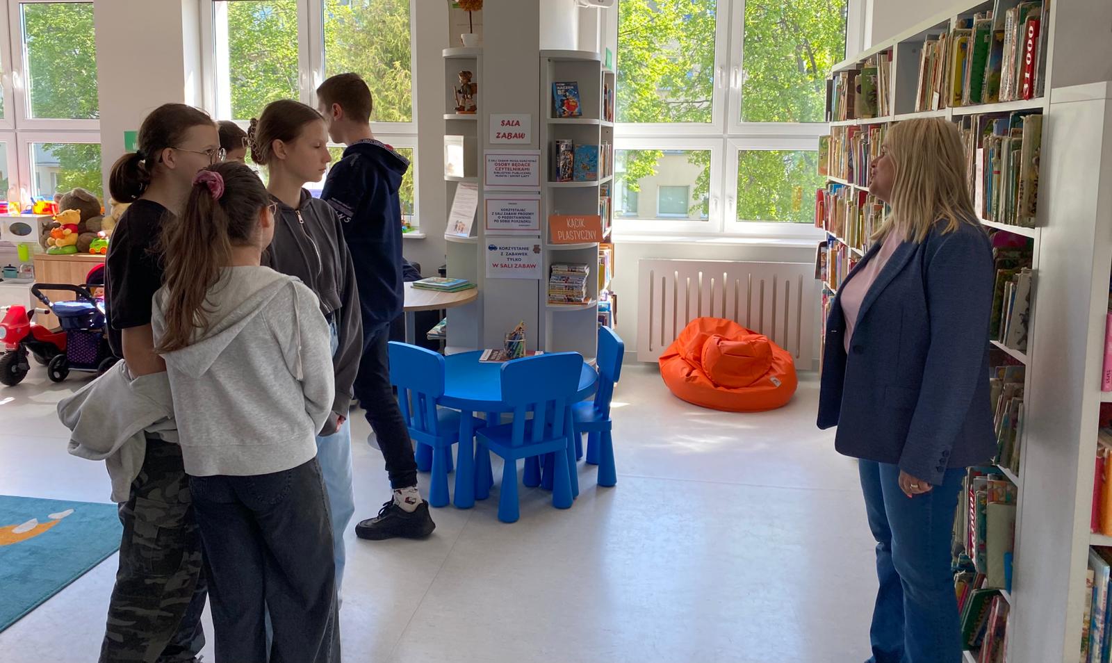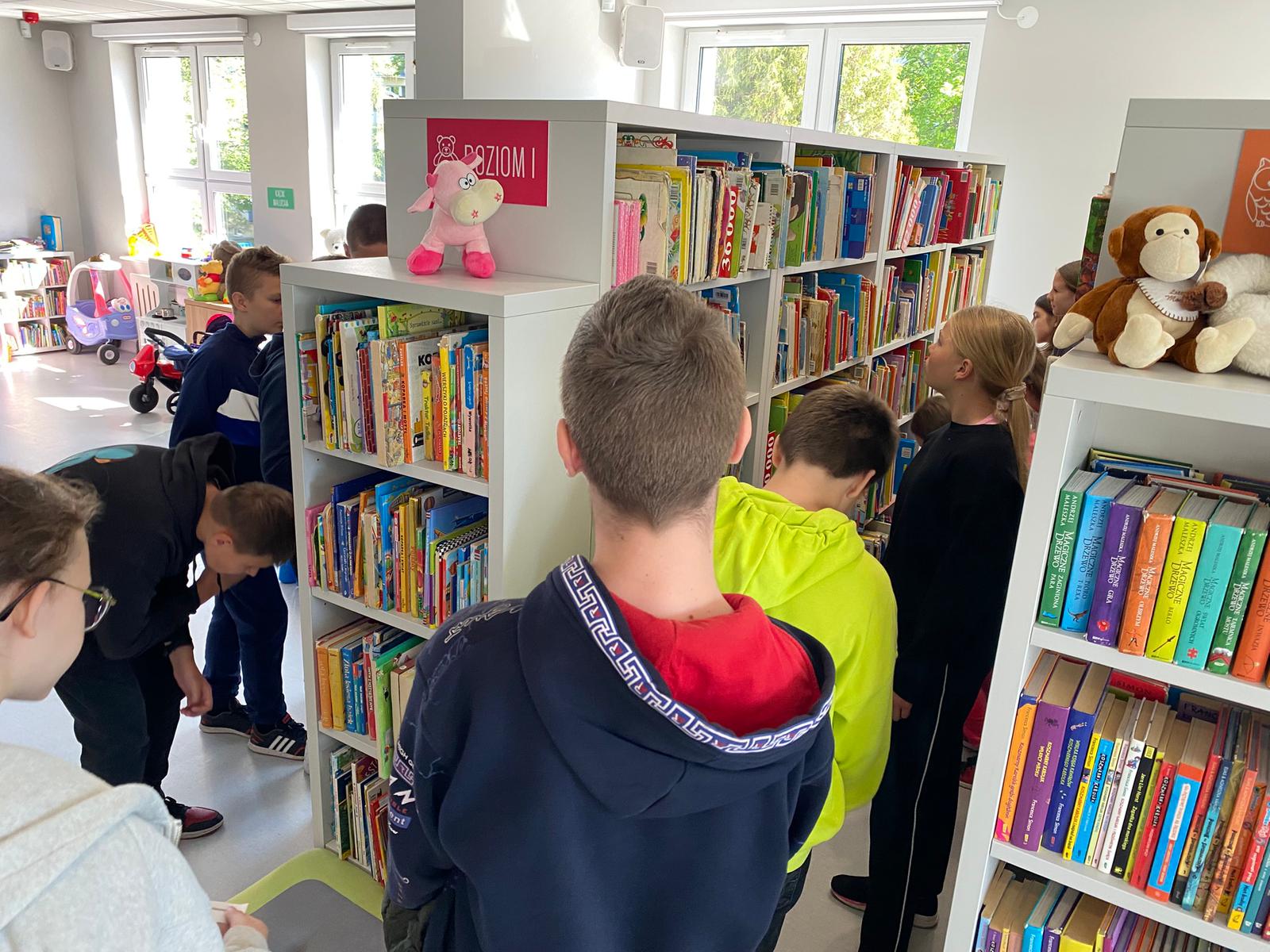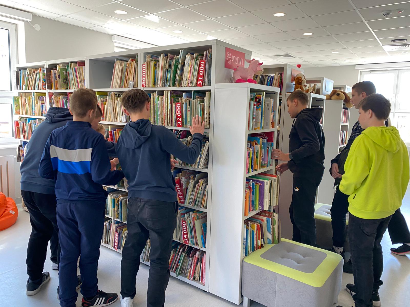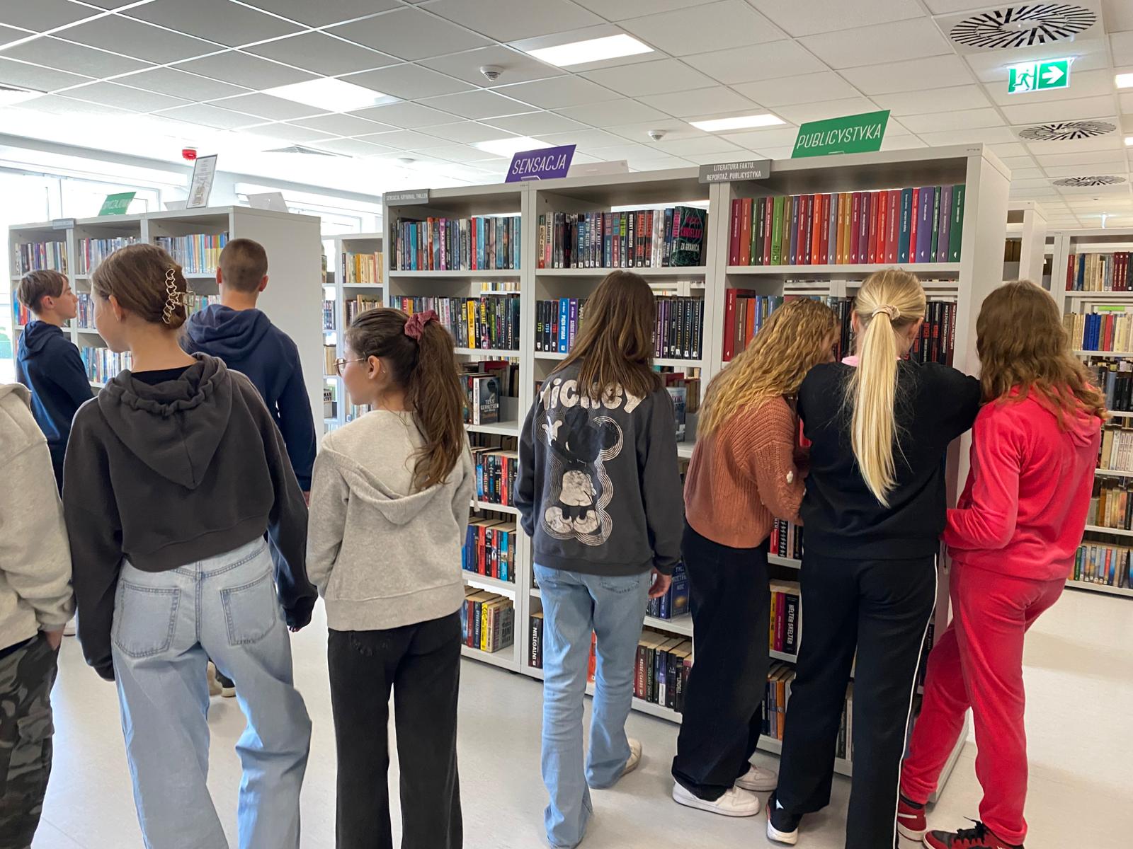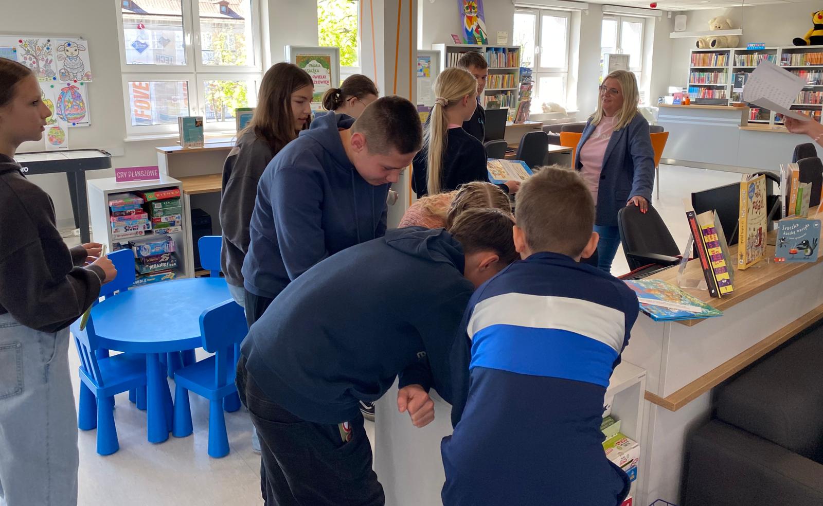 7 maja nasi uczniowie odwiedzili bibliotekę, podziwiając wystawę starych fotografii z okazji 100-lecia Łap i oglądając filmy o historii miasta. Dzięki paniom bibliotekarkom poznali wszystkie działy biblioteki