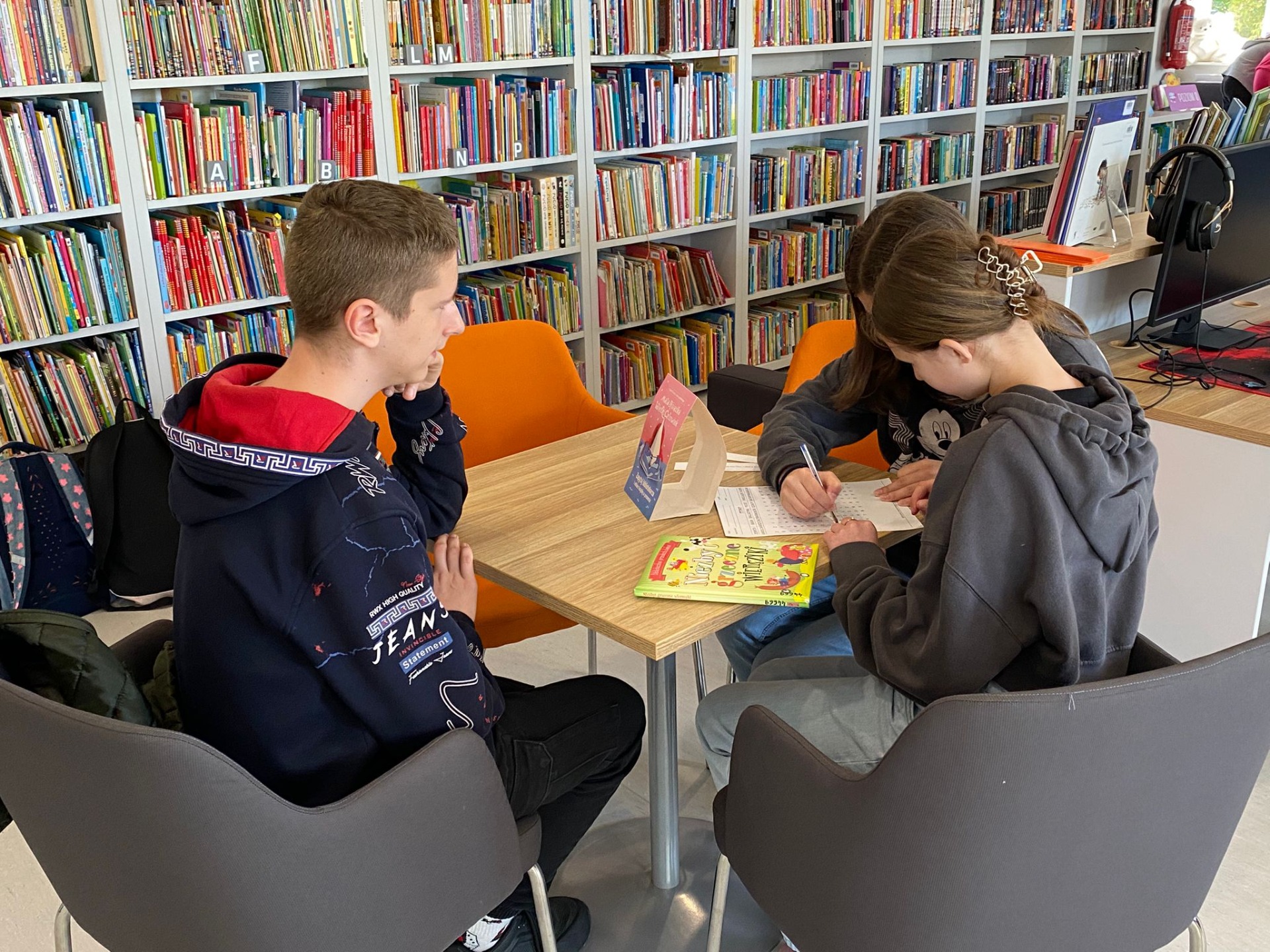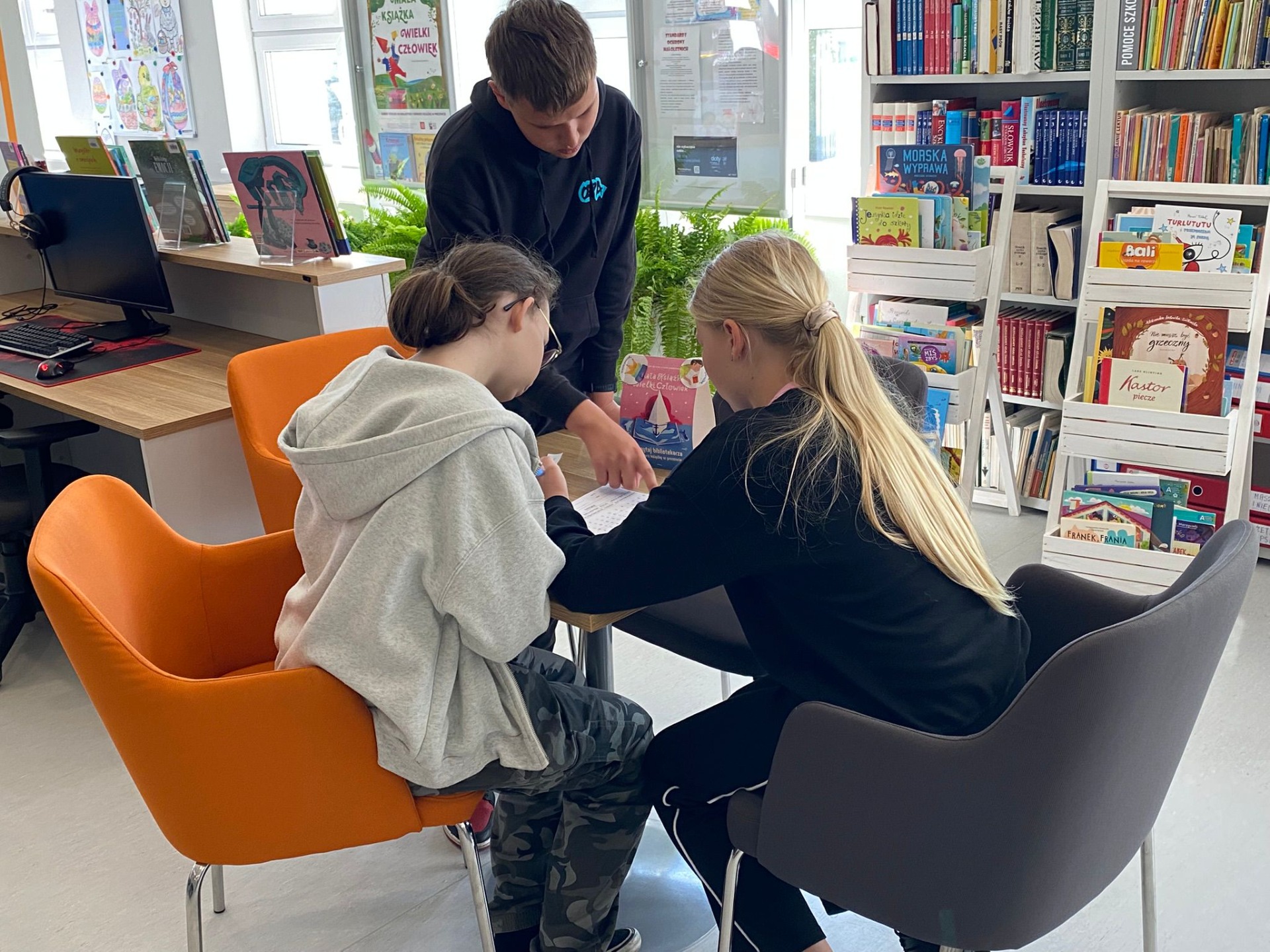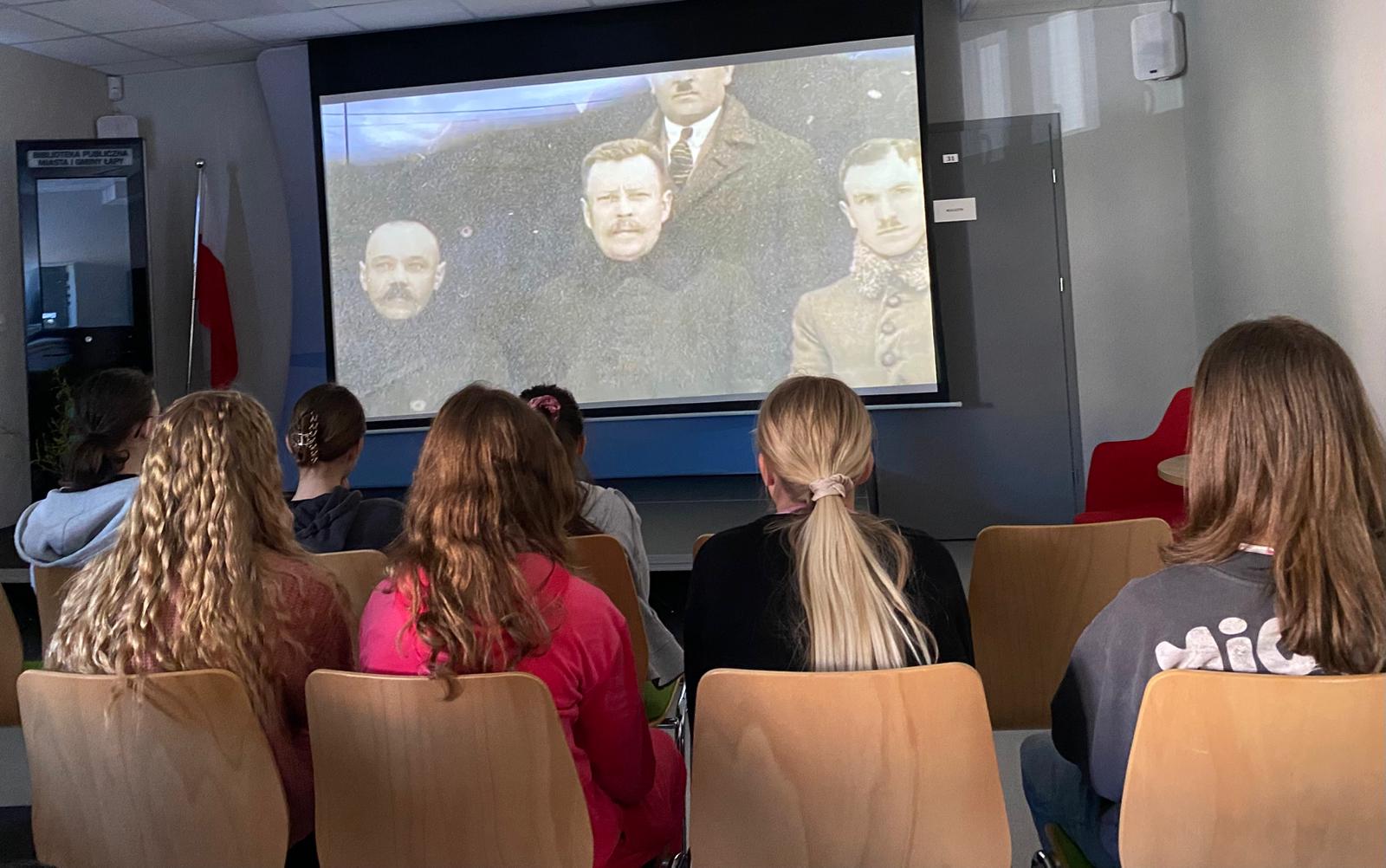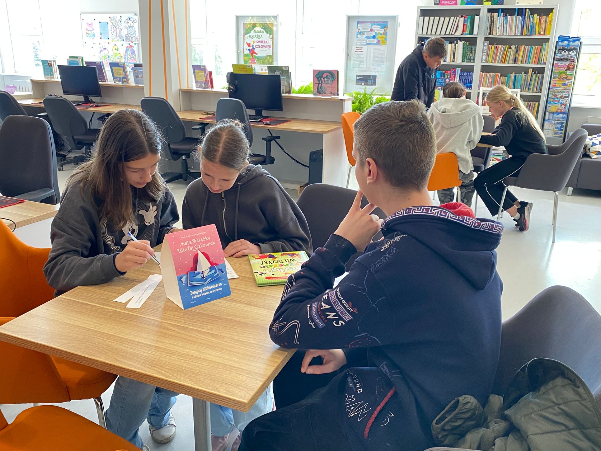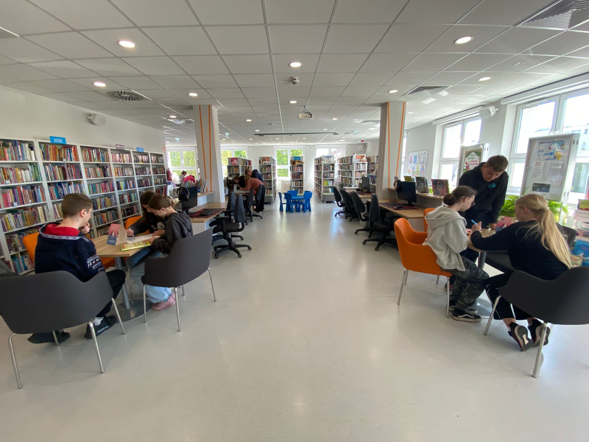 7 maja nasi uczniowie odwiedzili bibliotekę, podziwiając wystawę starych fotografii z okazji 100-lecia Łap i oglądając filmy o historii miasta. Dzięki paniom bibliotekarkom poznali wszystkie działy biblioteki