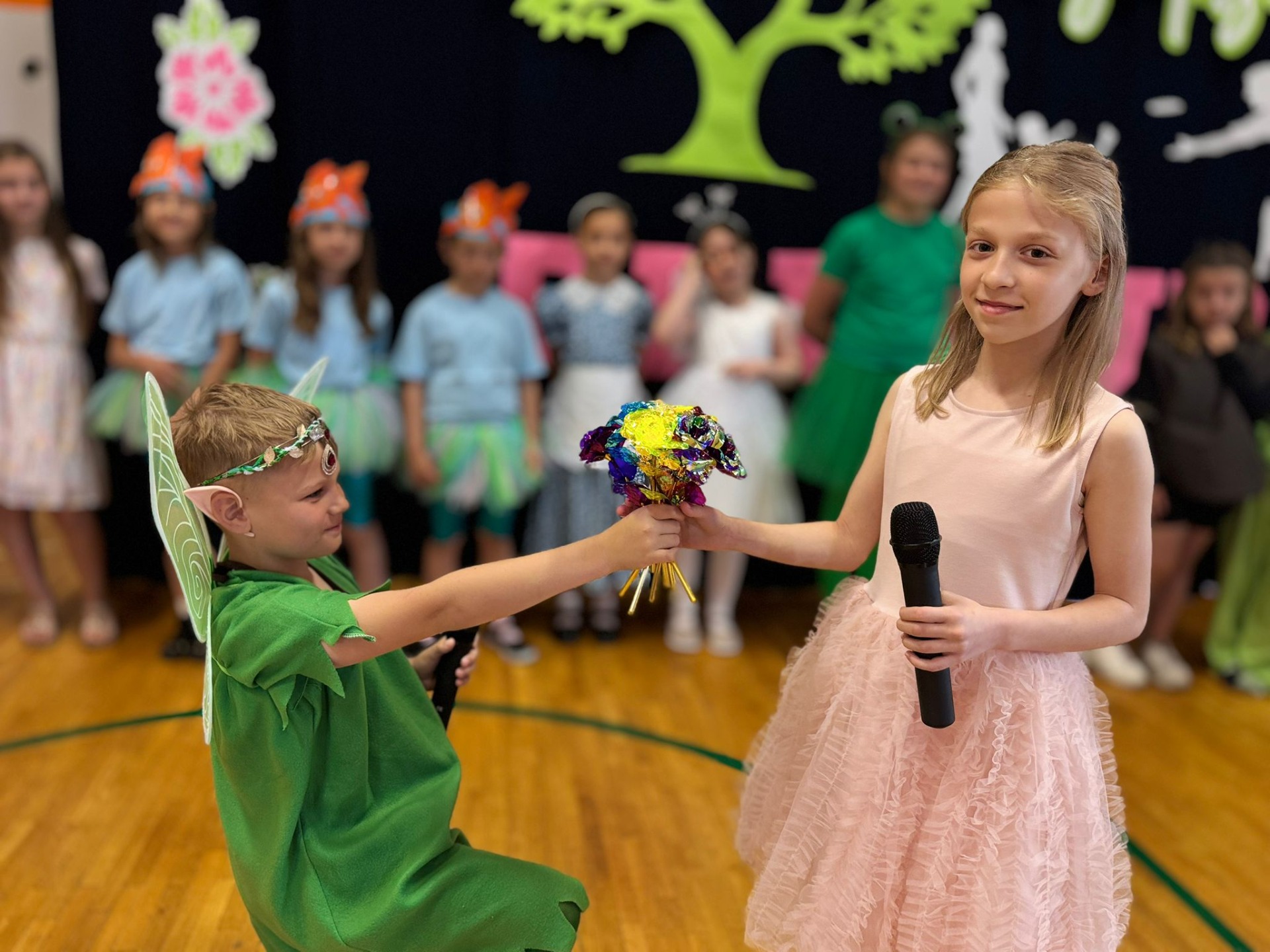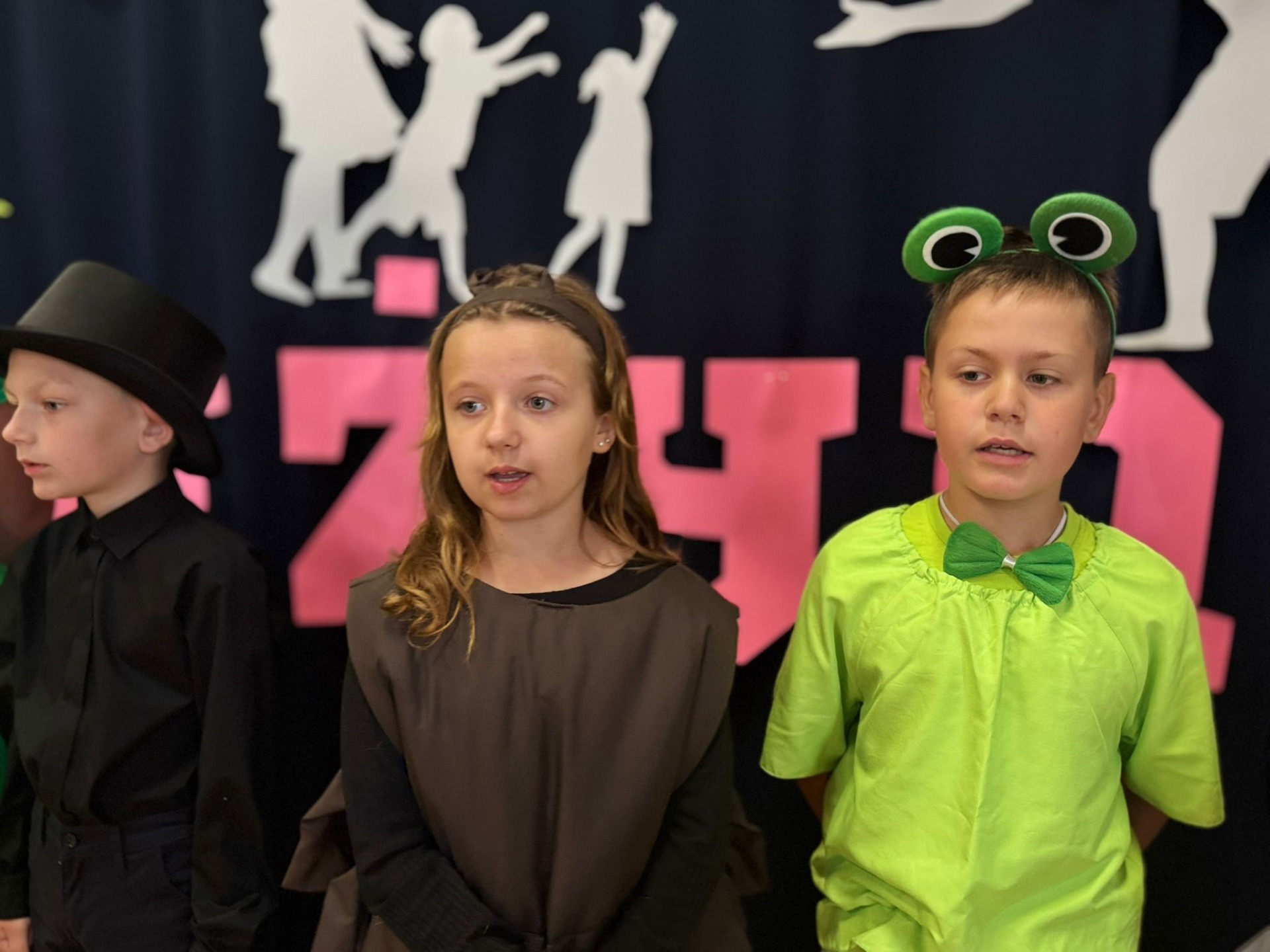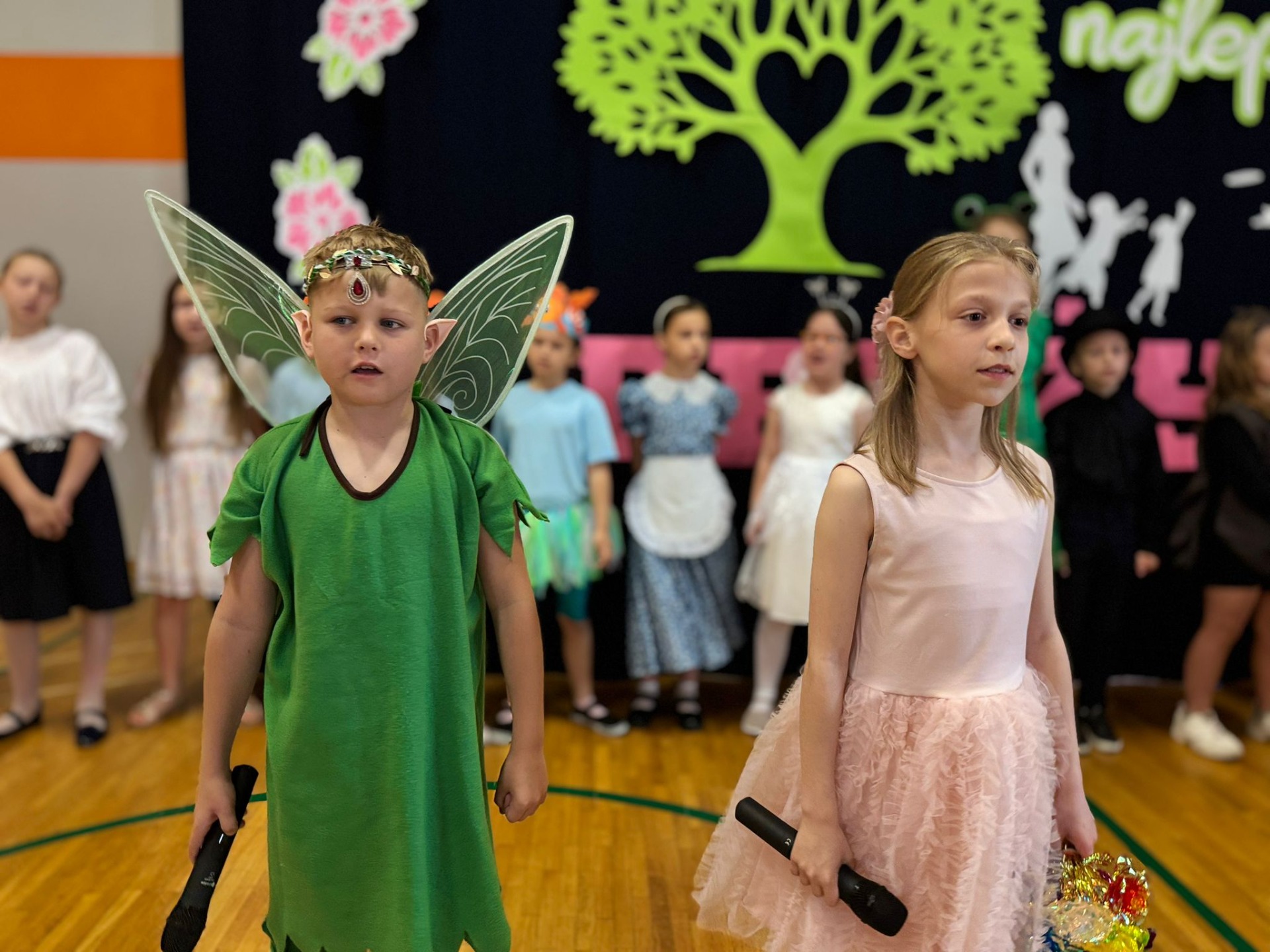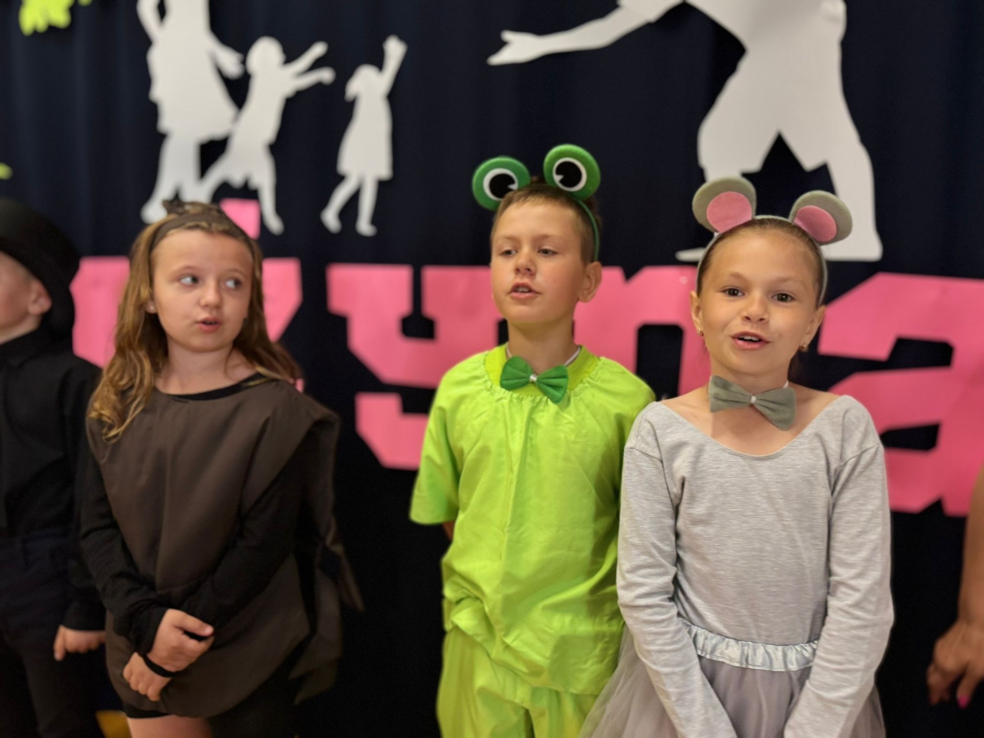 Po przemowach gości nadszedł czas na przedstawienie pt. „Calineczka” przygotowane przez klasy I-III oraz występy grup przedszkolnych. Dzieci zaprezentowały swoje zdolności taneczne, wokalne oraz aktorskie.