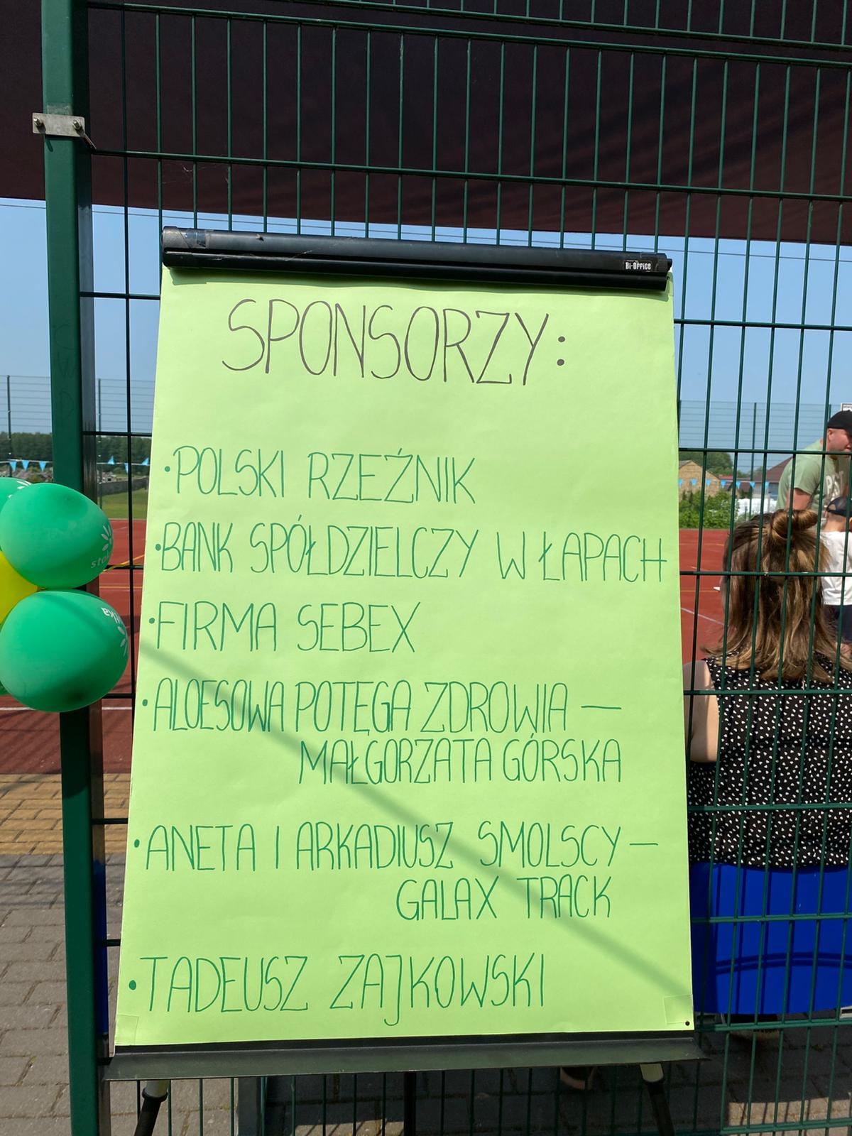 Rodzicom uczniów, w szczególności panom: Marcinowi Chojnowskiemu, Marcinowi Płońskiemu, Kamilowi Łapińskiemu, Grzegorzowi Płońskiemu za przygotowanie infrastruktury
