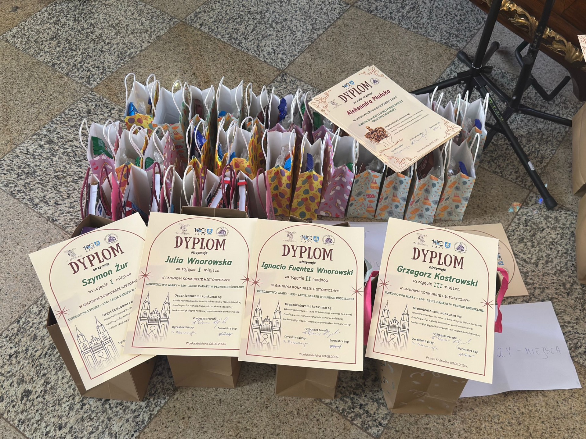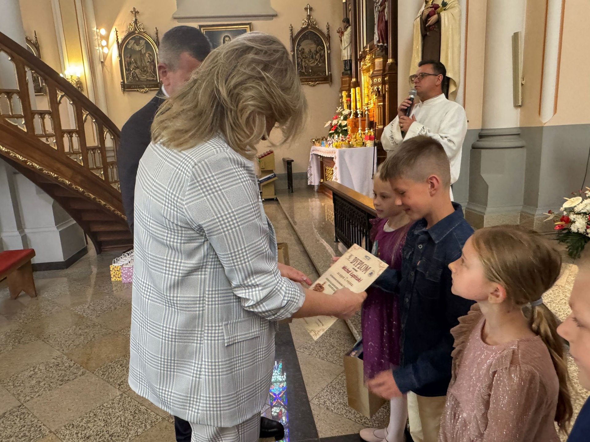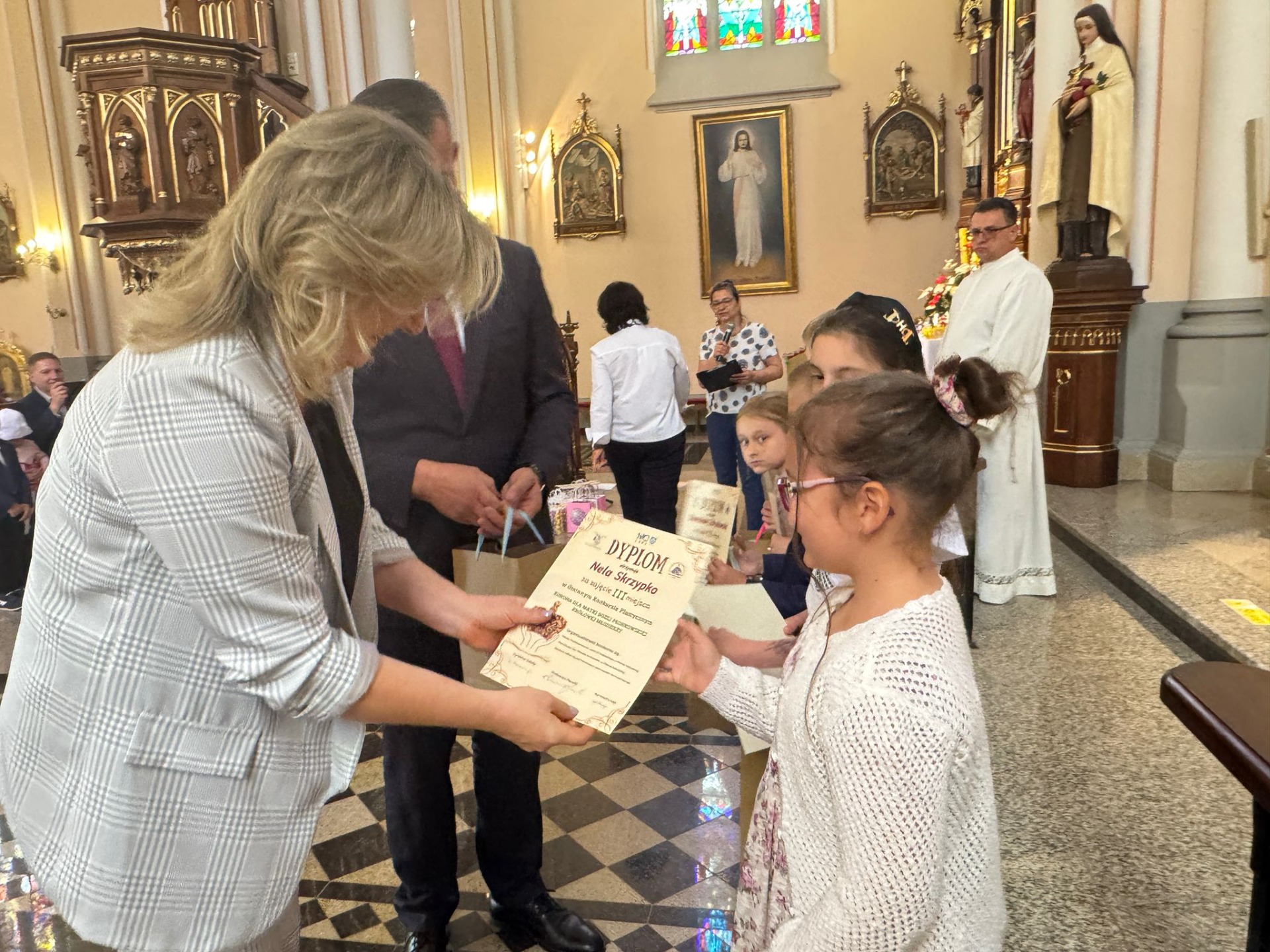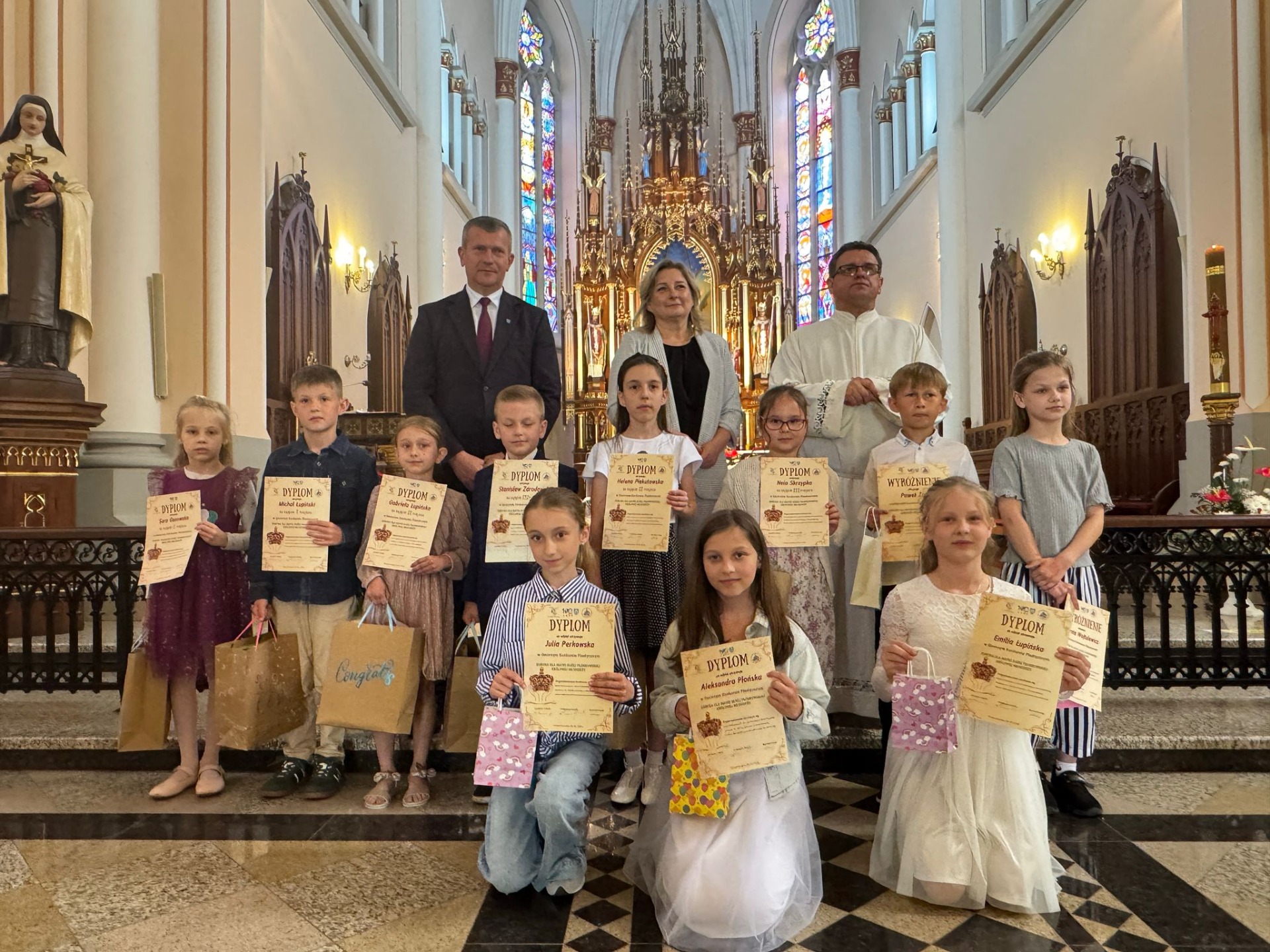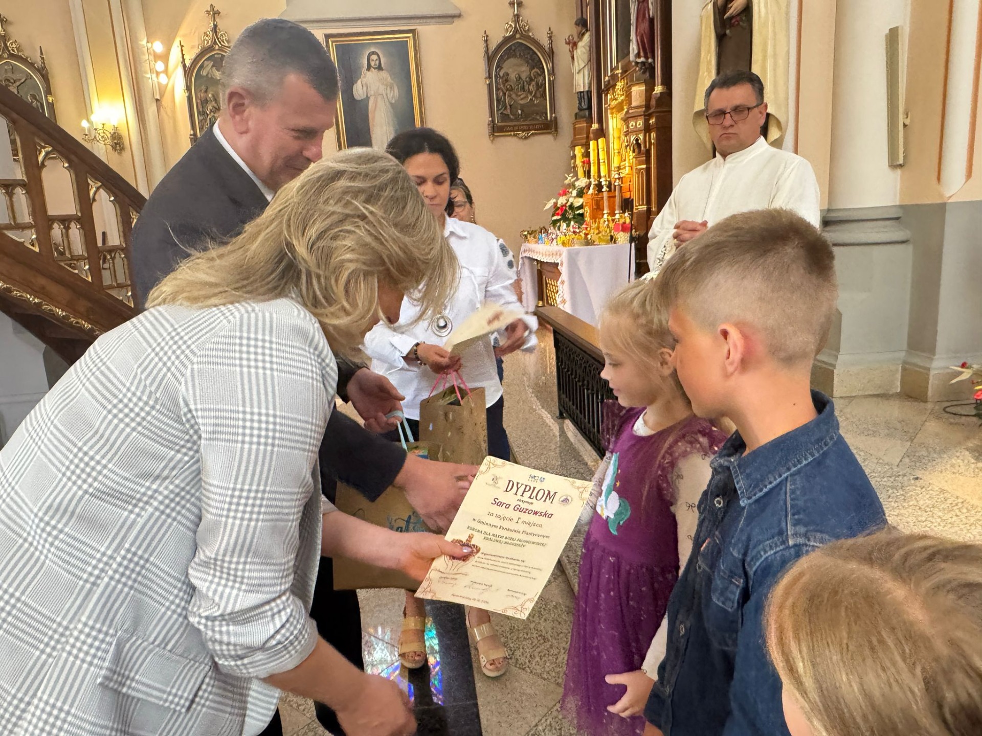 Uroczyste wręczenie nagród w konkursach zorganizowanych przez 🏫 Szkołę Podstawową i ⛪ parafię w Płonce Kościelnej pod honorowym patronatem 👨💼 Burmistrza Łap.