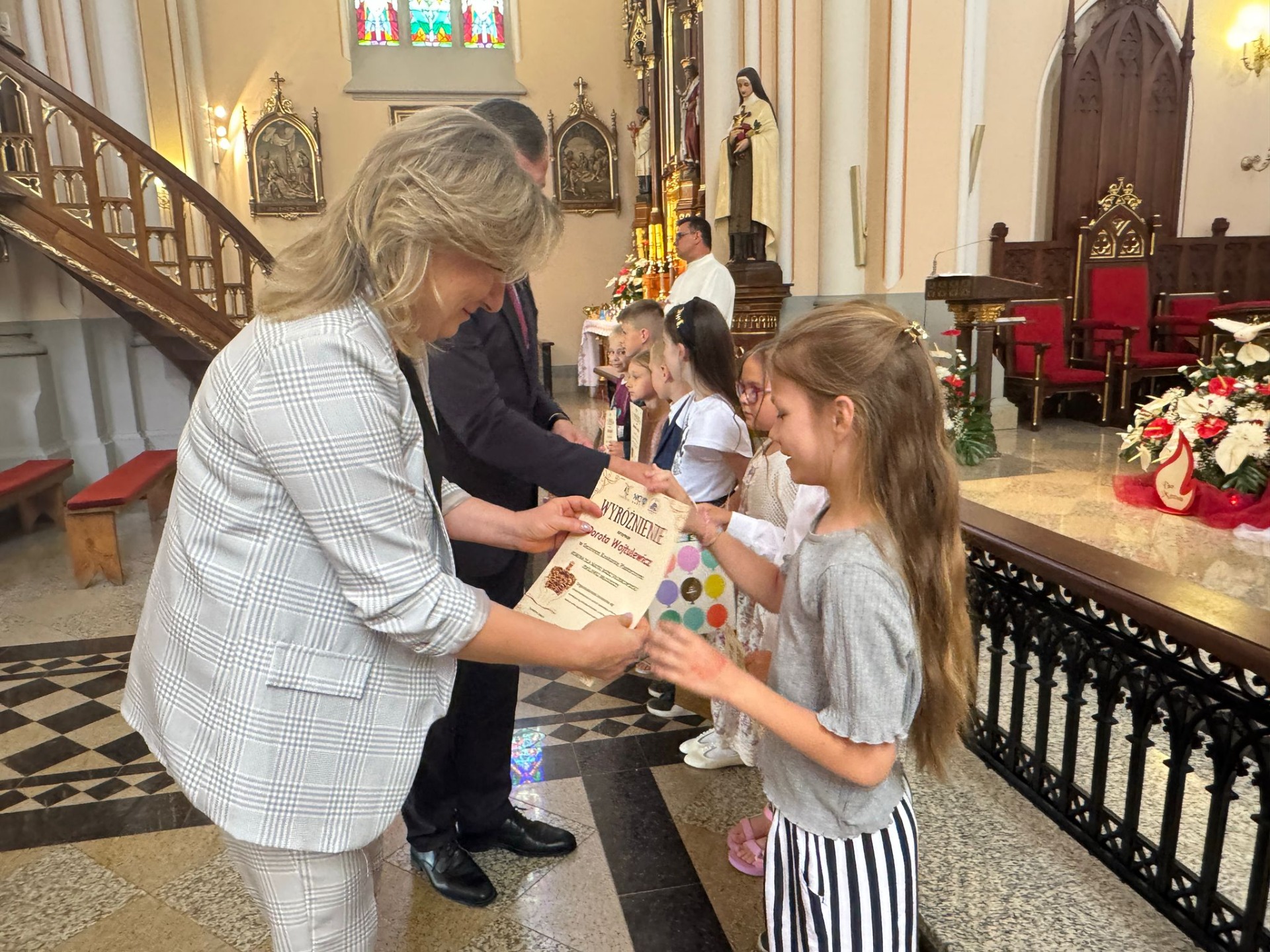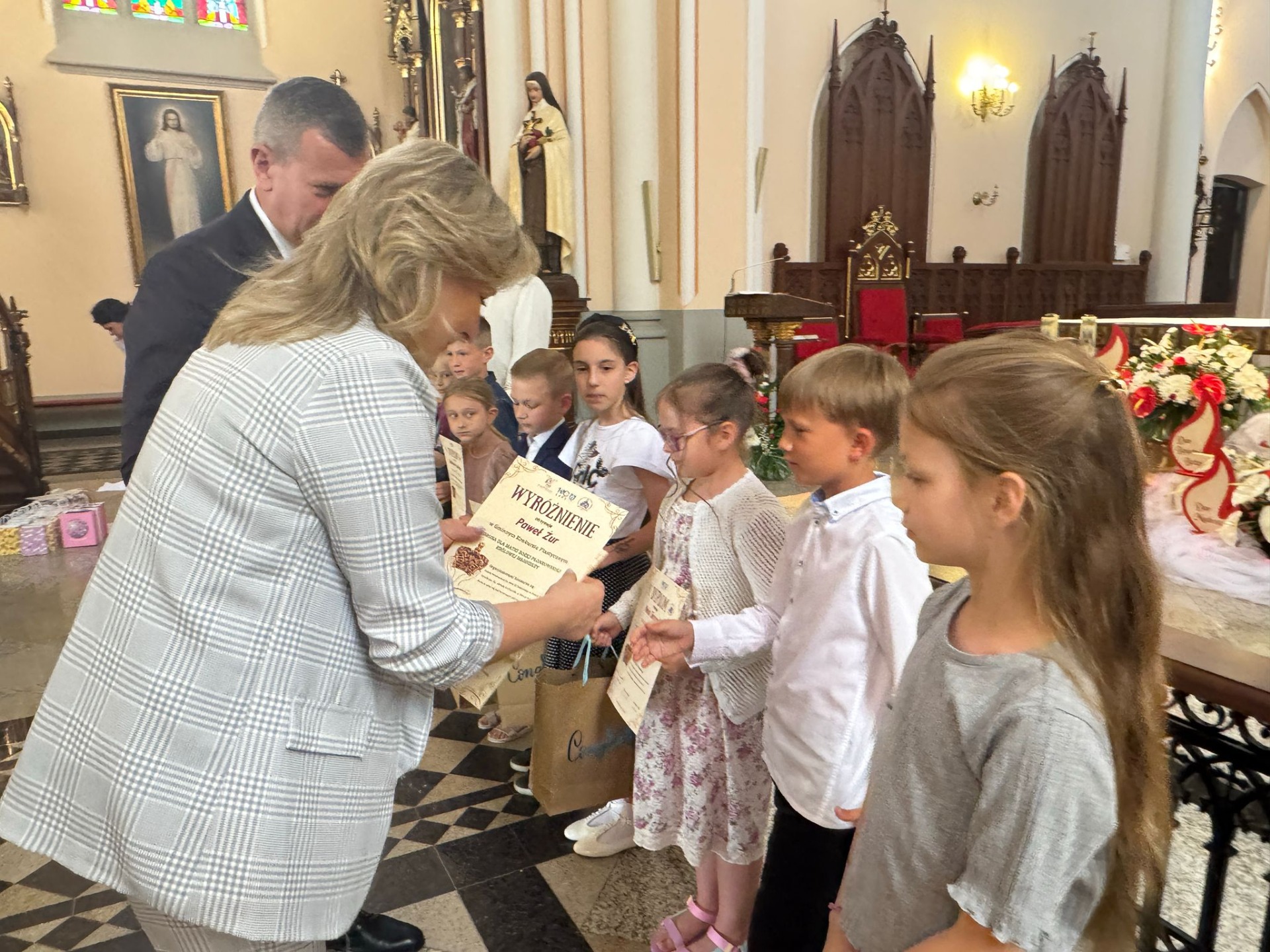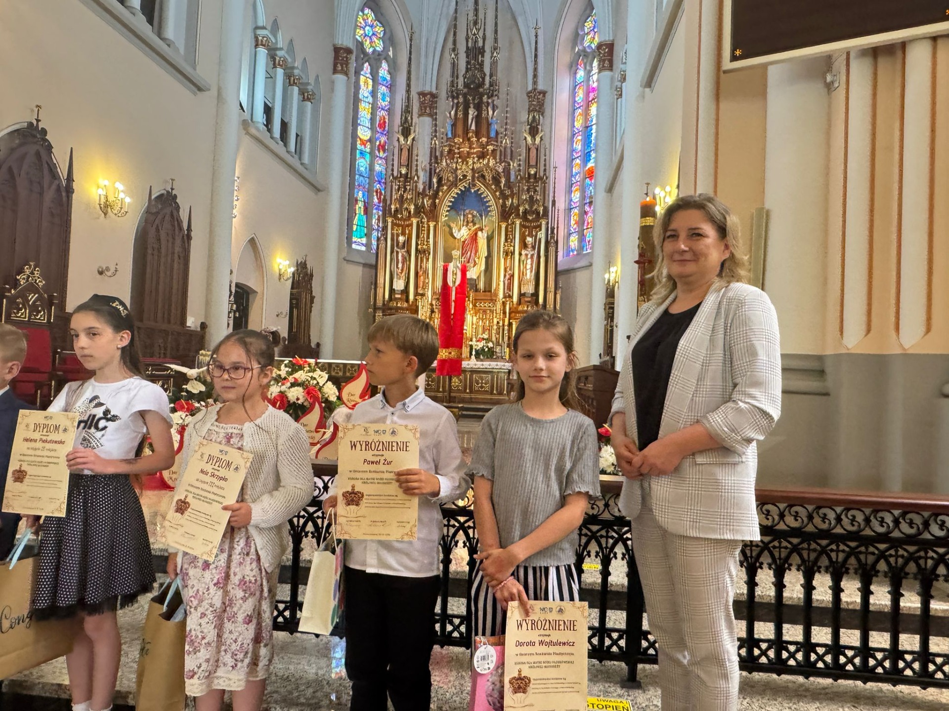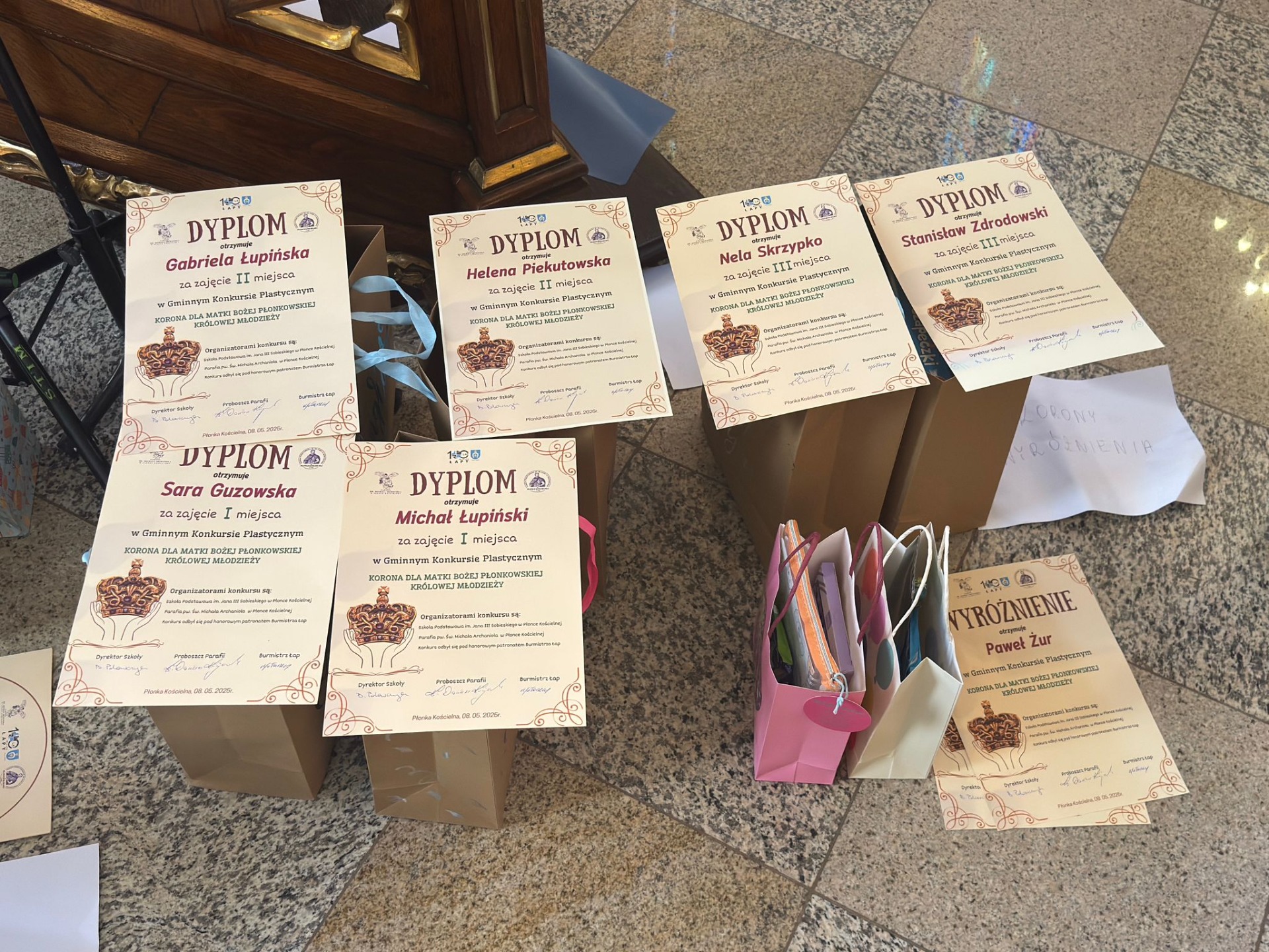Uroczyste wręczenie nagród w konkursach zorganizowanych przez 🏫 Szkołę Podstawową i ⛪ parafię w Płonce Kościelnej pod honorowym patronatem 👨💼 Burmistrza Łap.