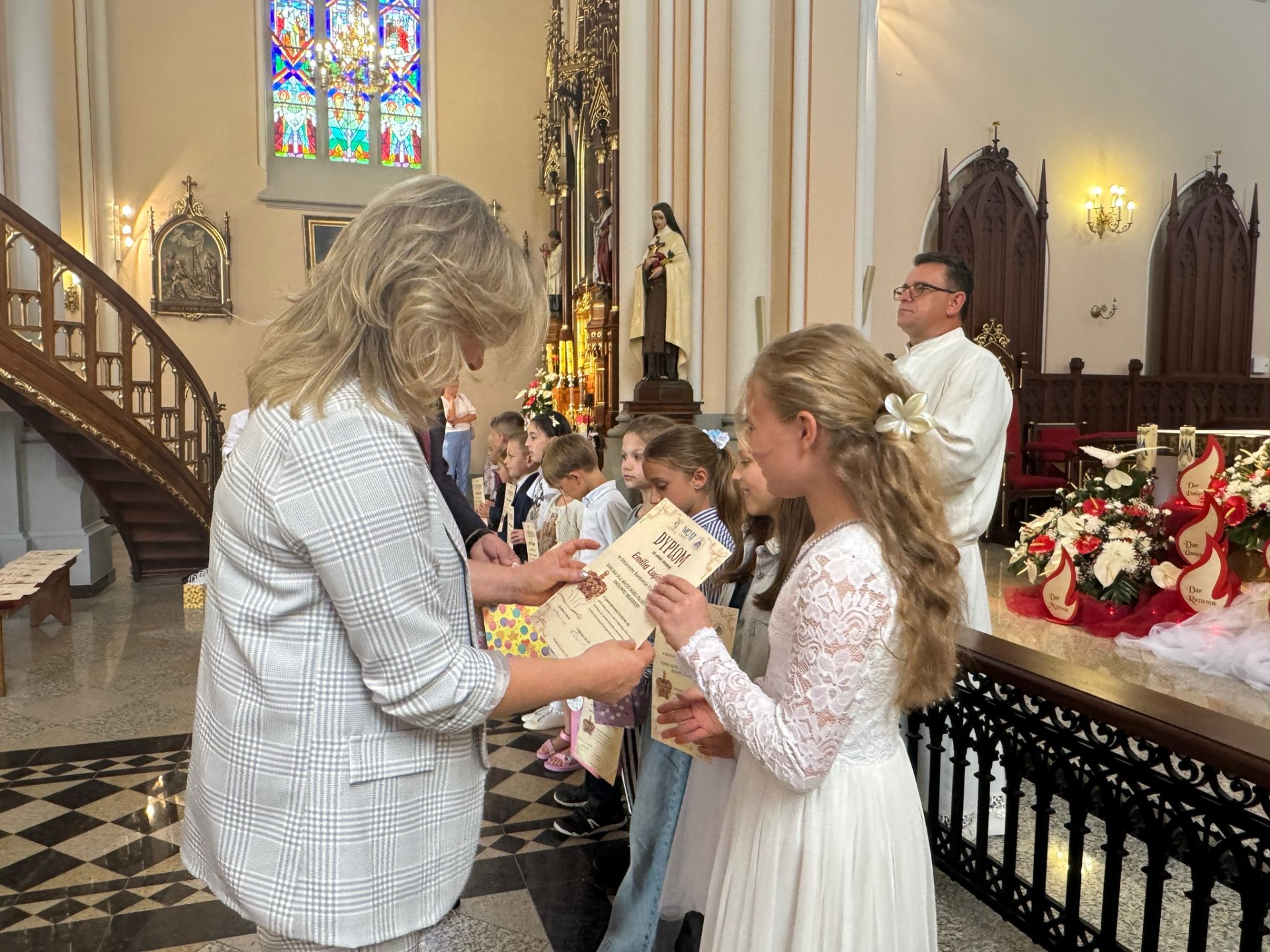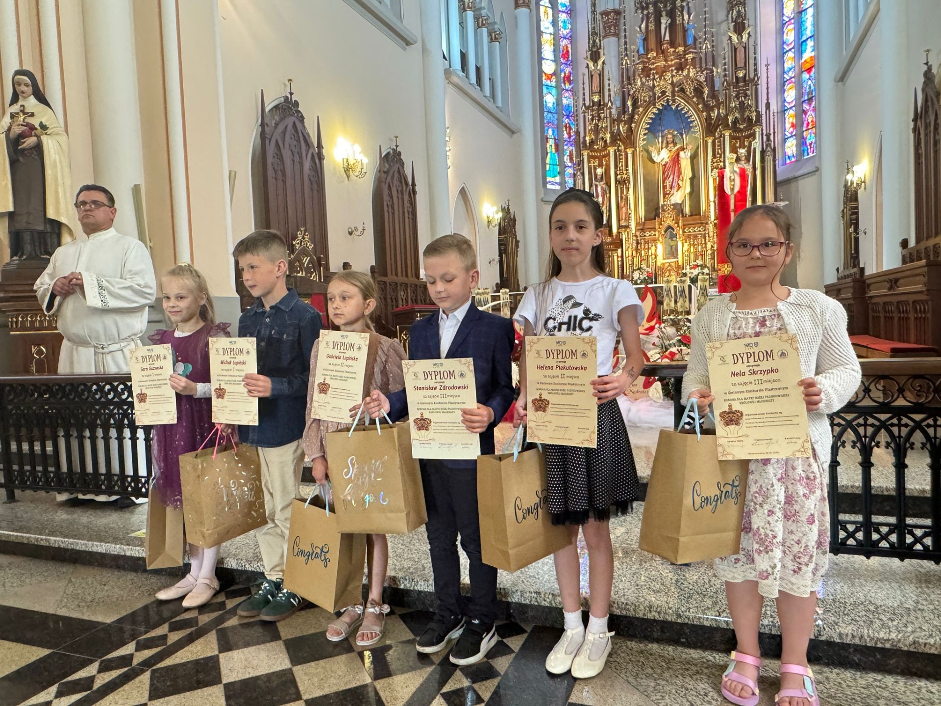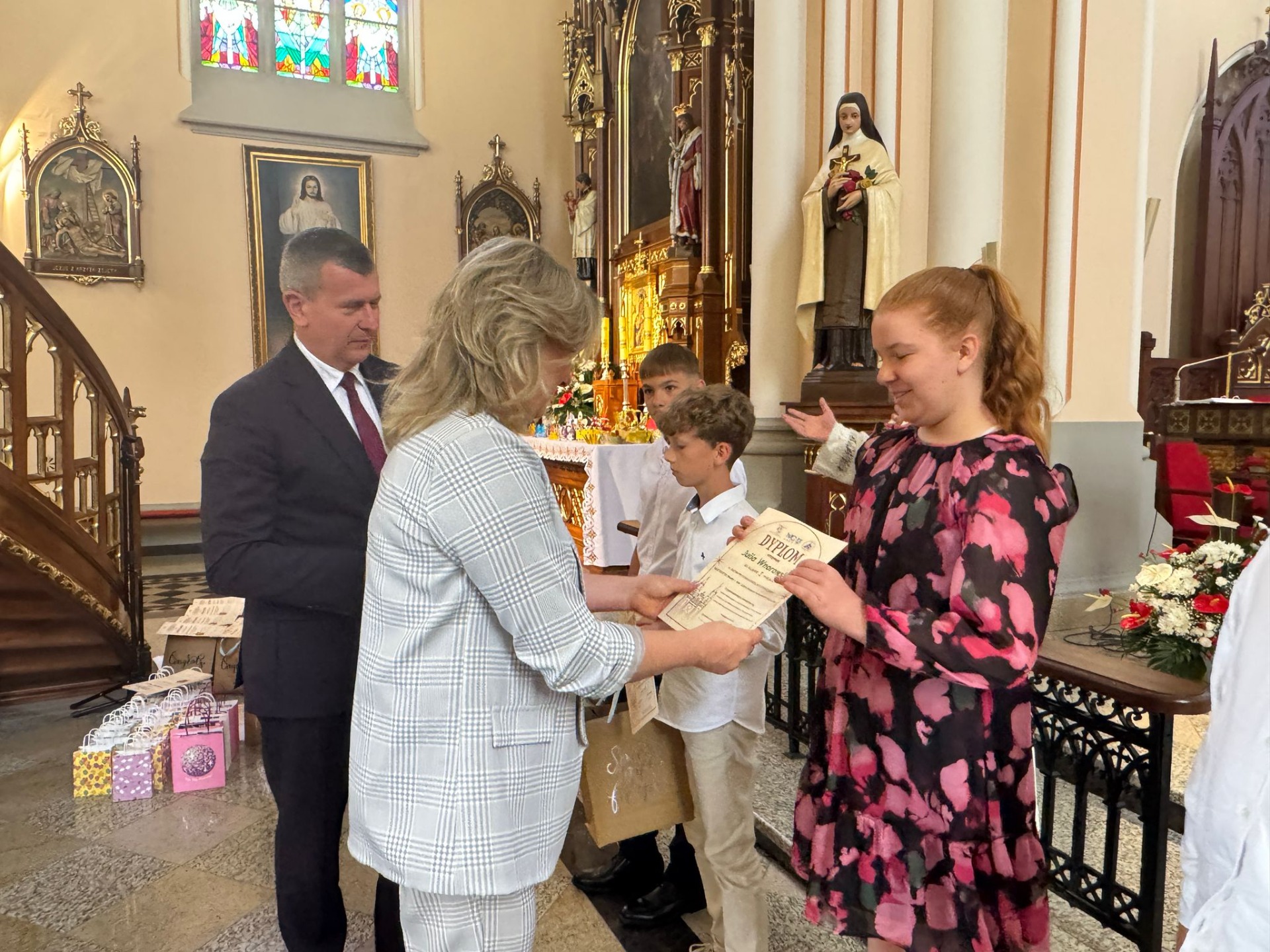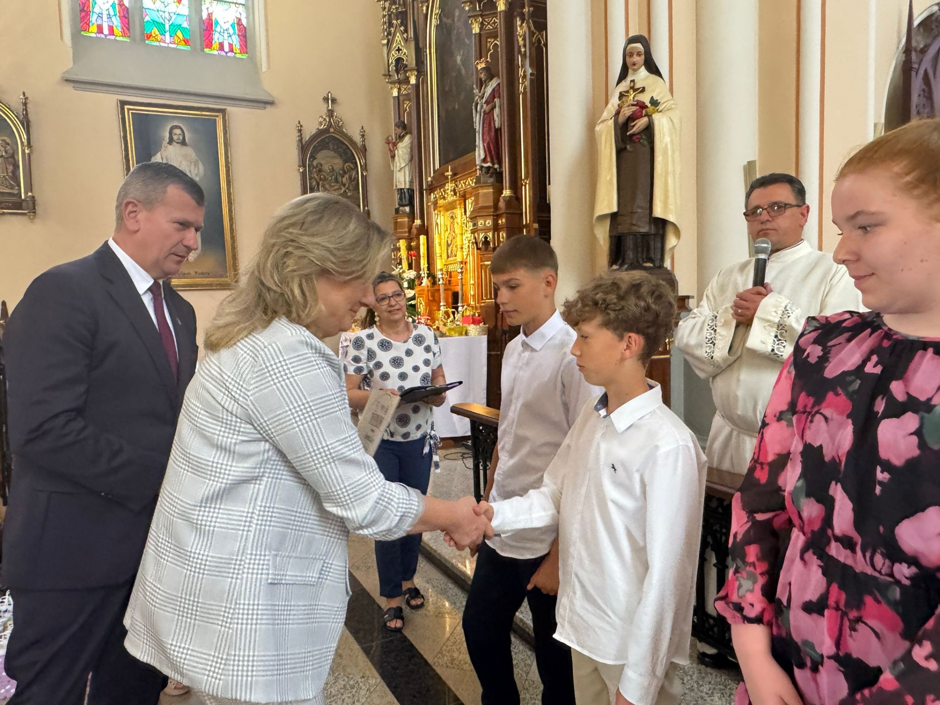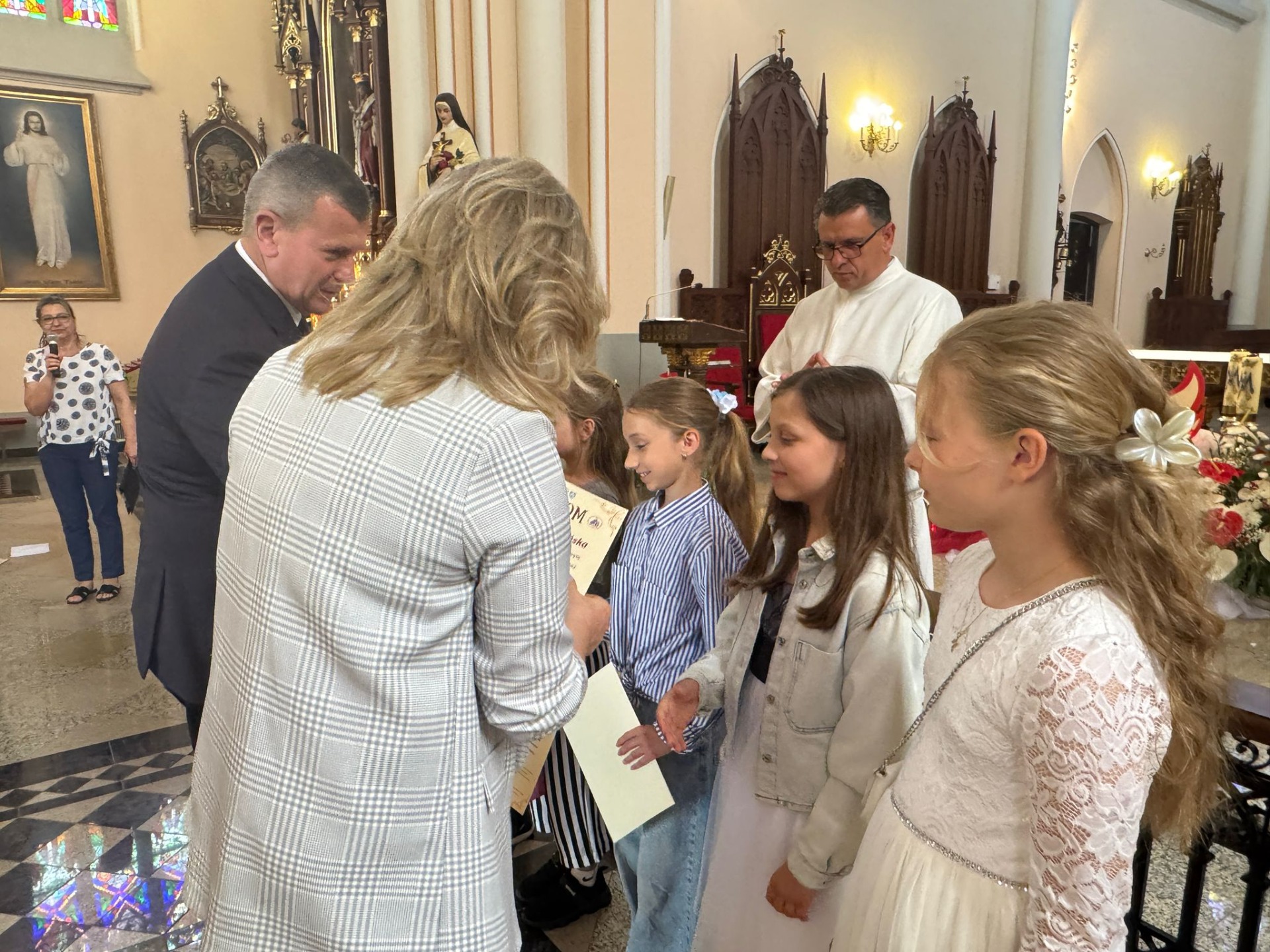 Uroczyste wręczenie nagród w konkursach zorganizowanych przez 🏫 Szkołę Podstawową i ⛪ parafię w Płonce Kościelnej pod honorowym patronatem 👨💼 Burmistrza Łap.