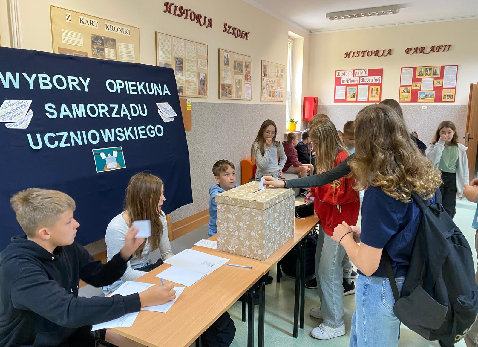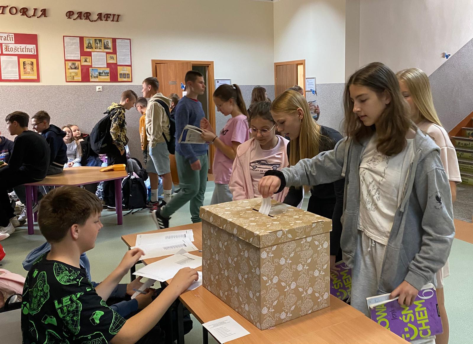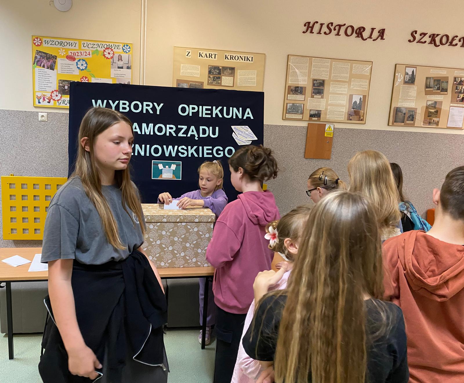 – uczniowie klas IV–VIII wzięli udział w ważnym głosowaniu, wybierając opiekuna Samorządu Uczniowskiego na kolejny rok szkolny.