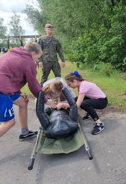 udzielanie pierwszej pomocy (m.in. zakładanie stazy na manekina),