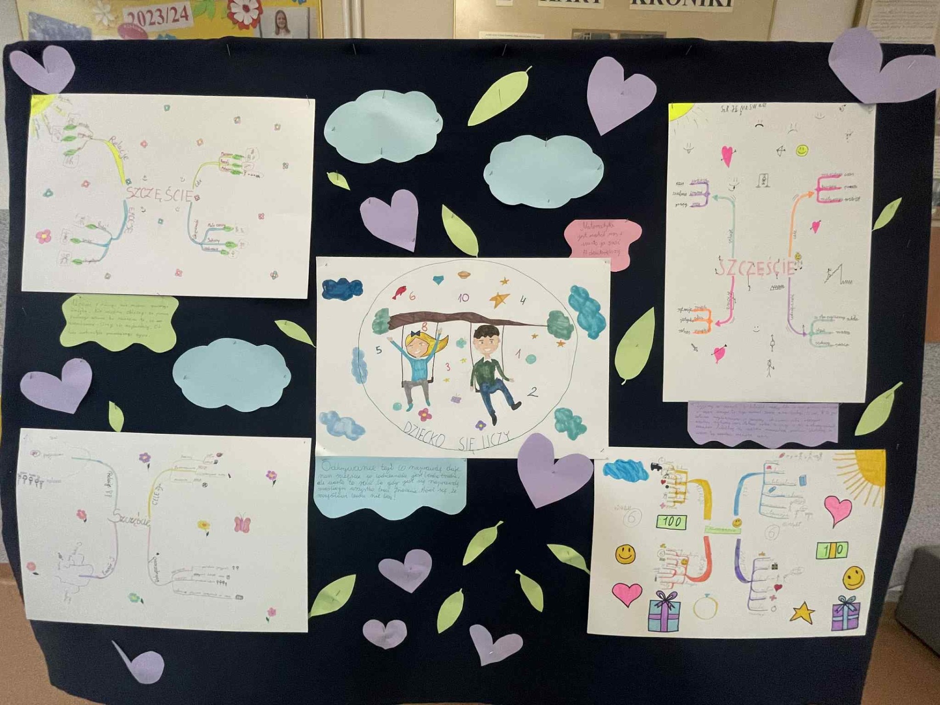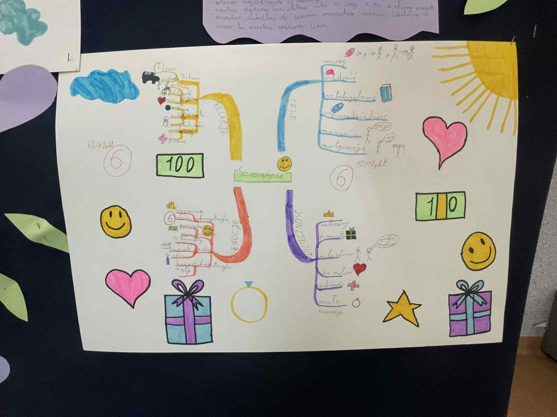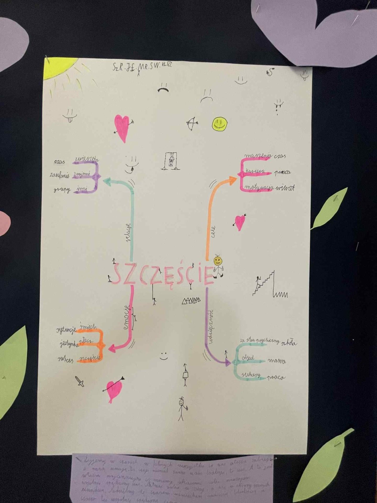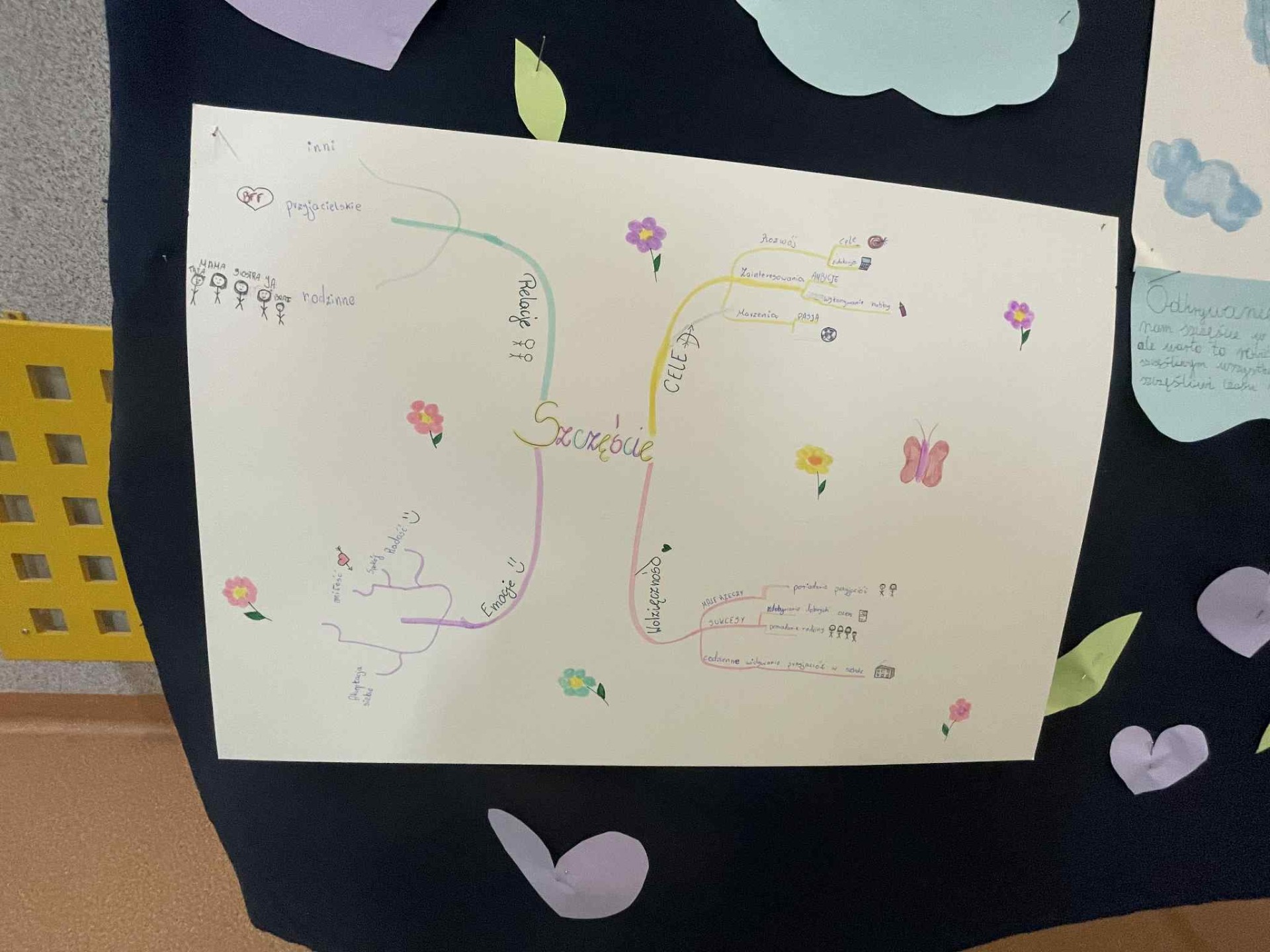 Uczniowie chętnie dzielili się swoimi przemyśleniami, a wspólne omawianie map stało się okazją do rozmowy o wartościach, emocjach i codziennych źródłach szczęścia