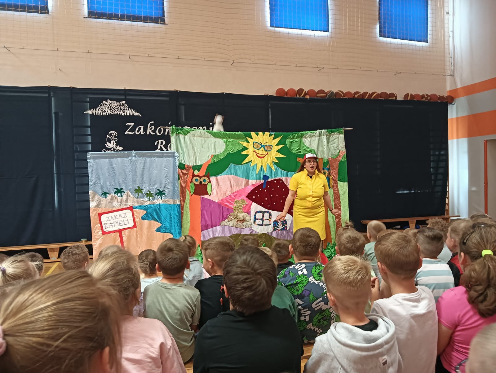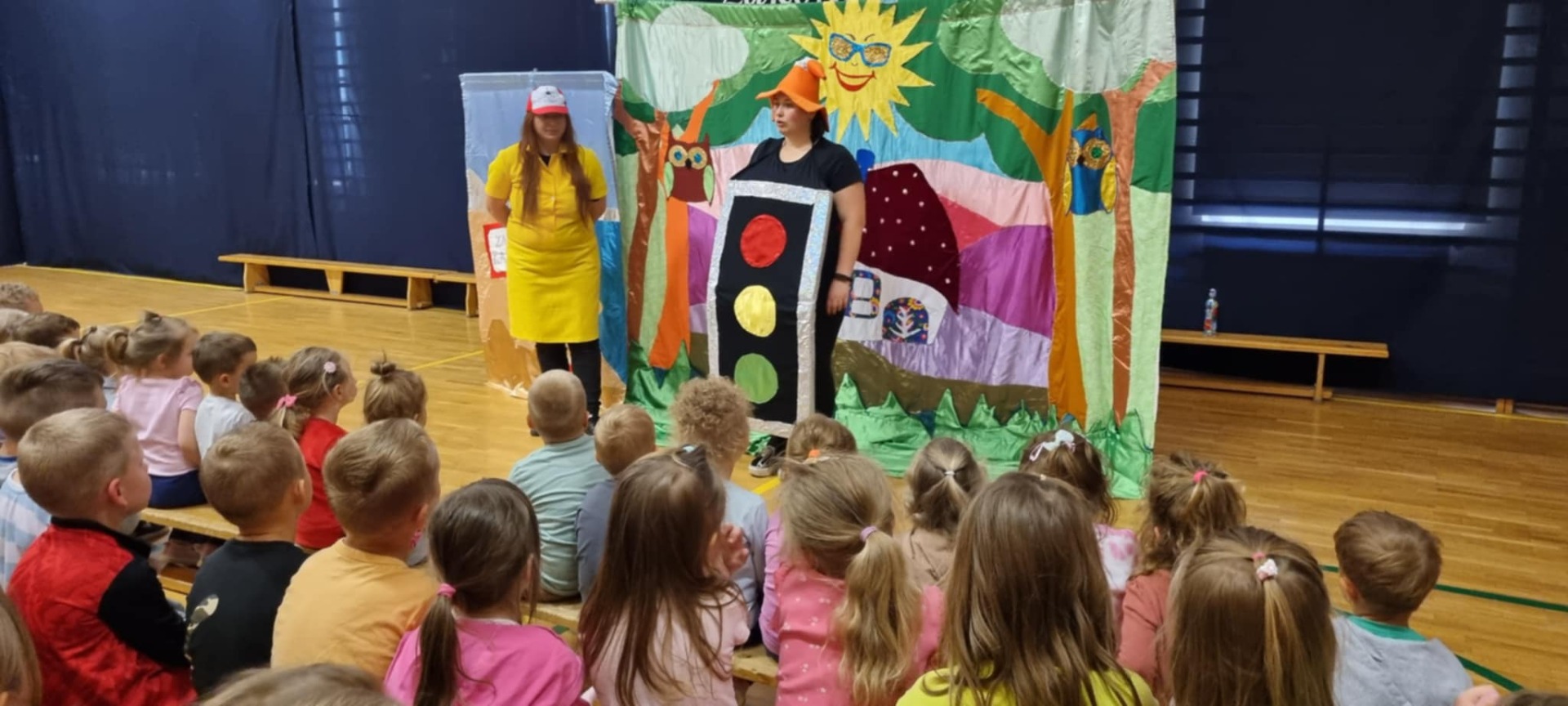W ostatnim tygodniu przed rozpoczęciem wakacji, w ramach akcji „Tydzień dla Bezpieczeństwa”, uczniowie grup przedszkolnych i klas 1–3 obejrzeli przedstawienie teatralne pt. "Idzie lato, co Ty na to?"