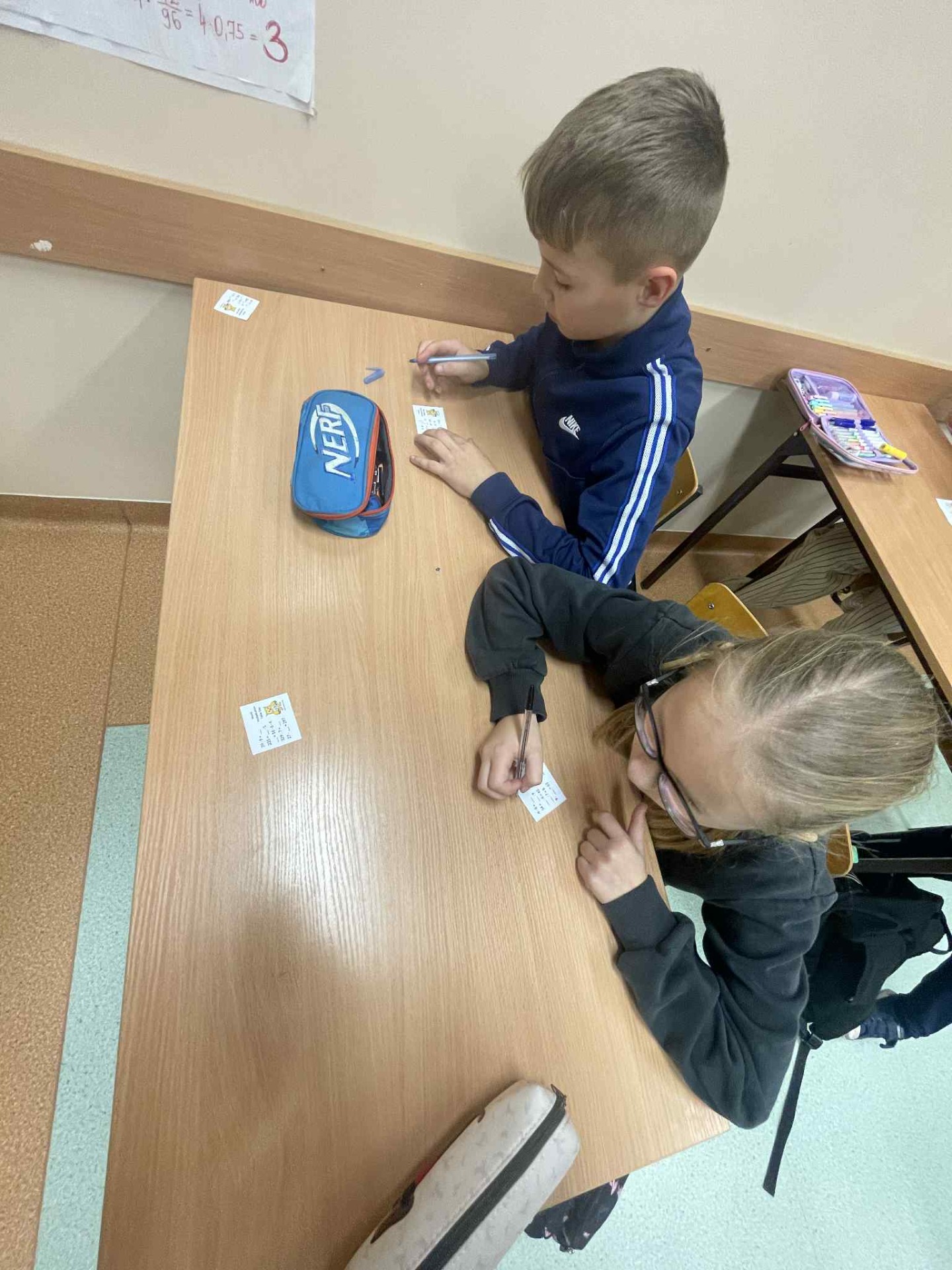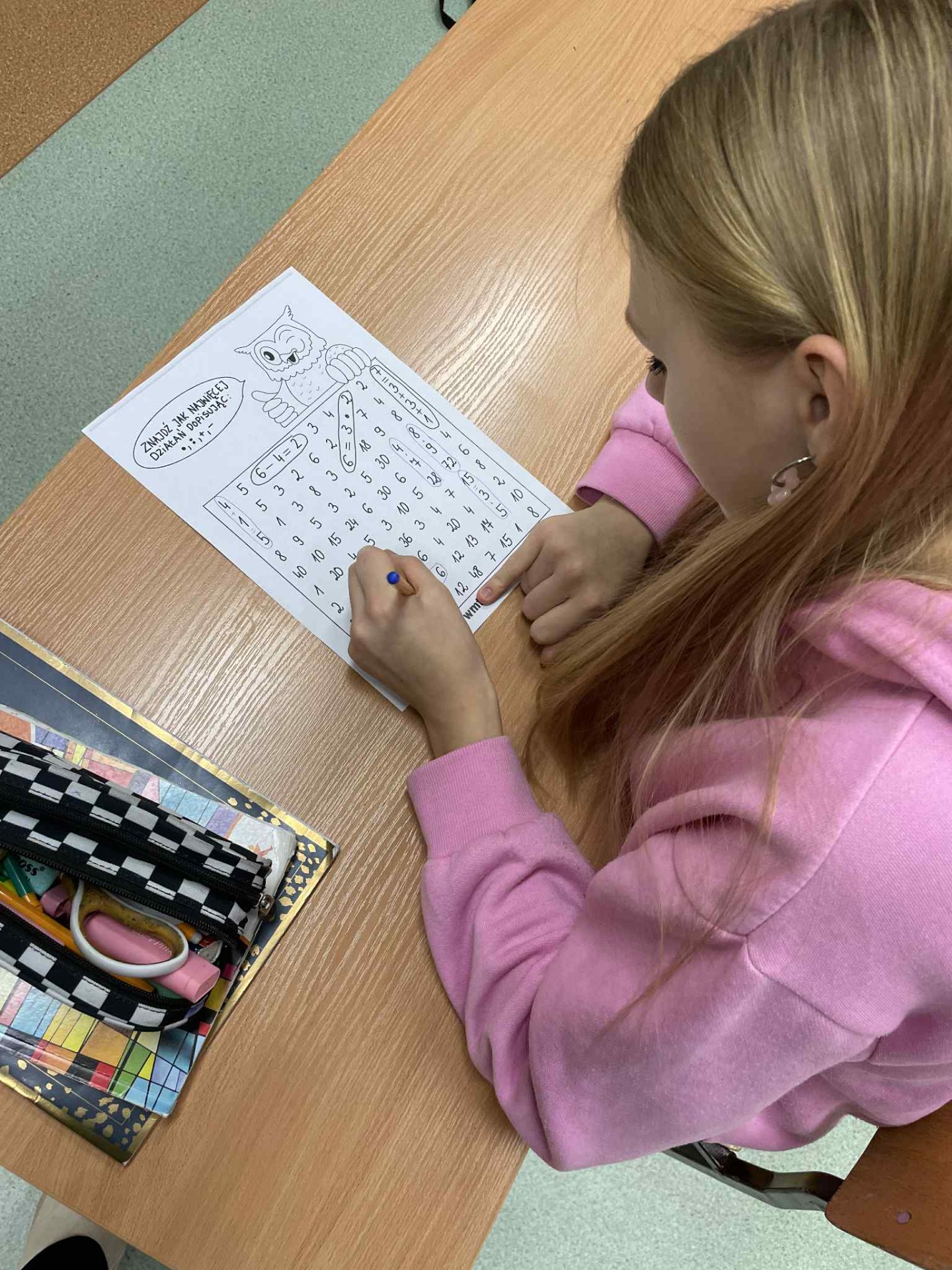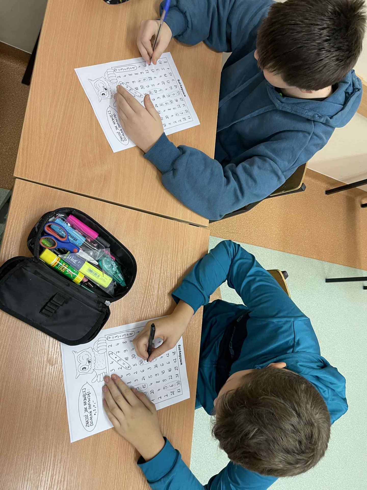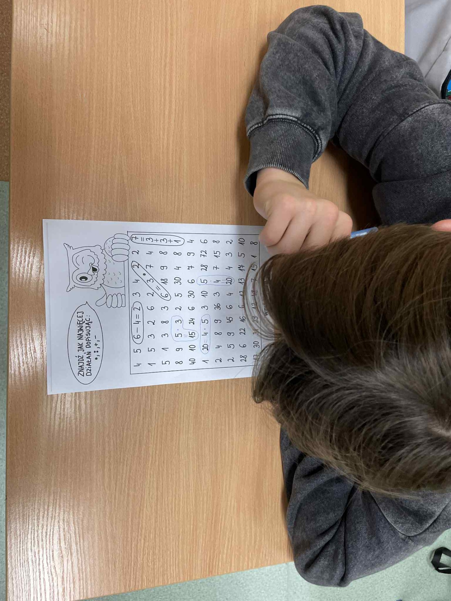 Uczniowie sprawdzali swoją wiedzę rozwiązując przykłady na czas. Rozwiązywanie przykładów przyniosło wiele radości naszym uczniom. Podczas rywalizacji uczestnicy mogli wykazać się znajomością tabliczki mnożenia i dzielenia oraz dobrze się bawić podczas gry terenowej rozwieszonej w różnych zakamarkach szkoły.