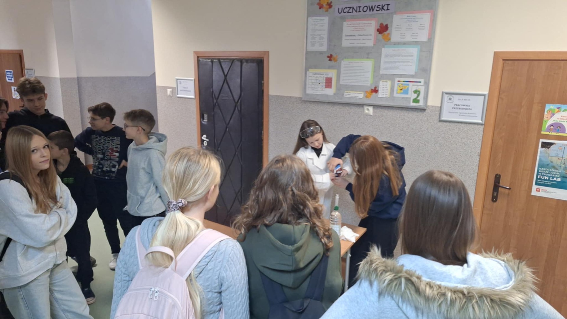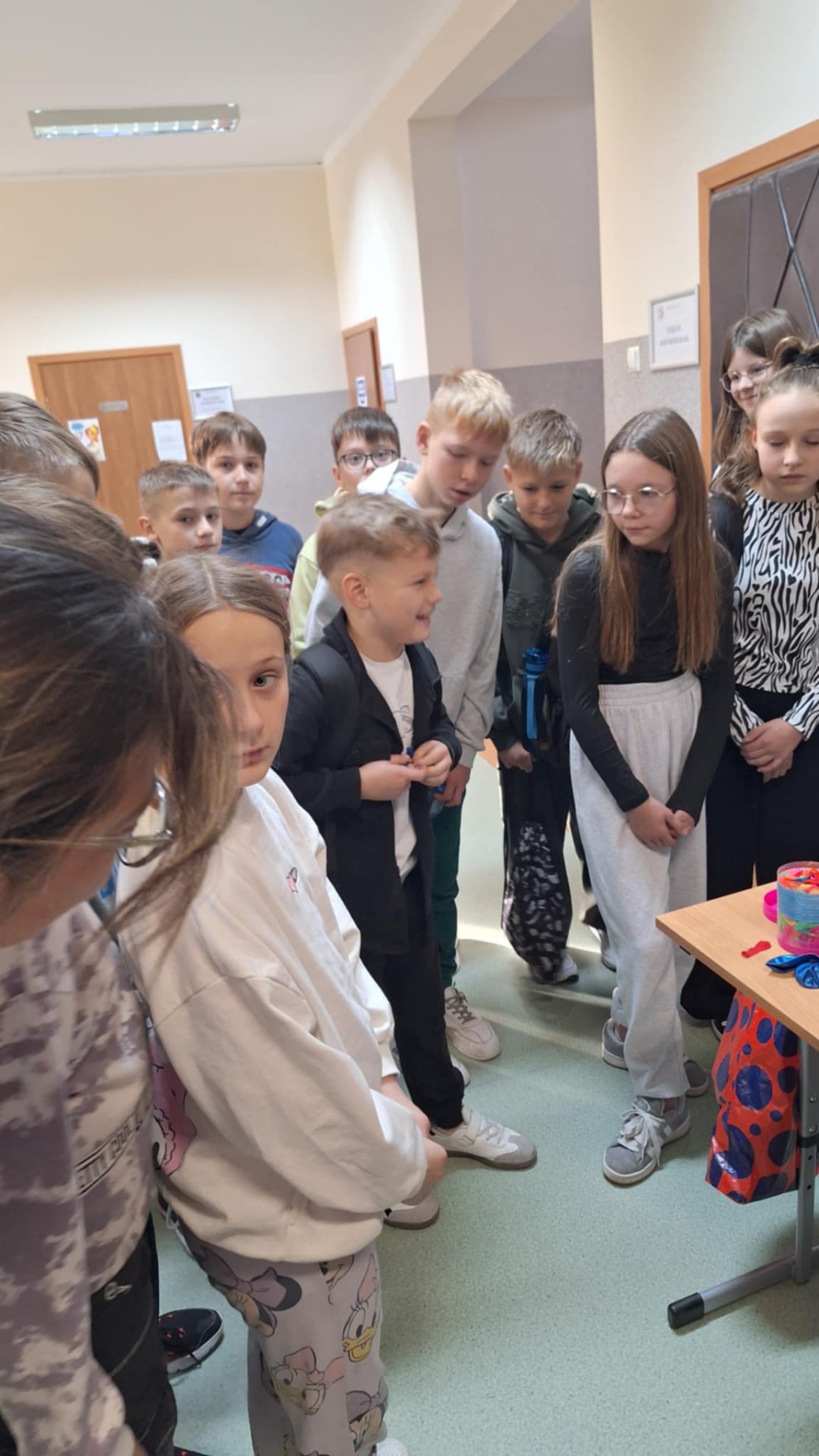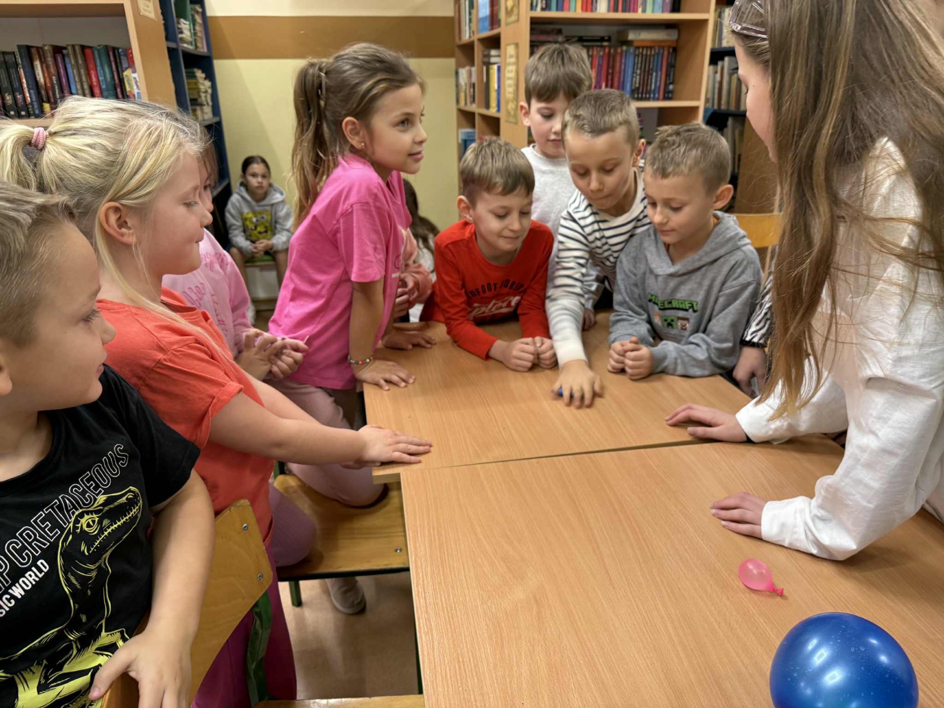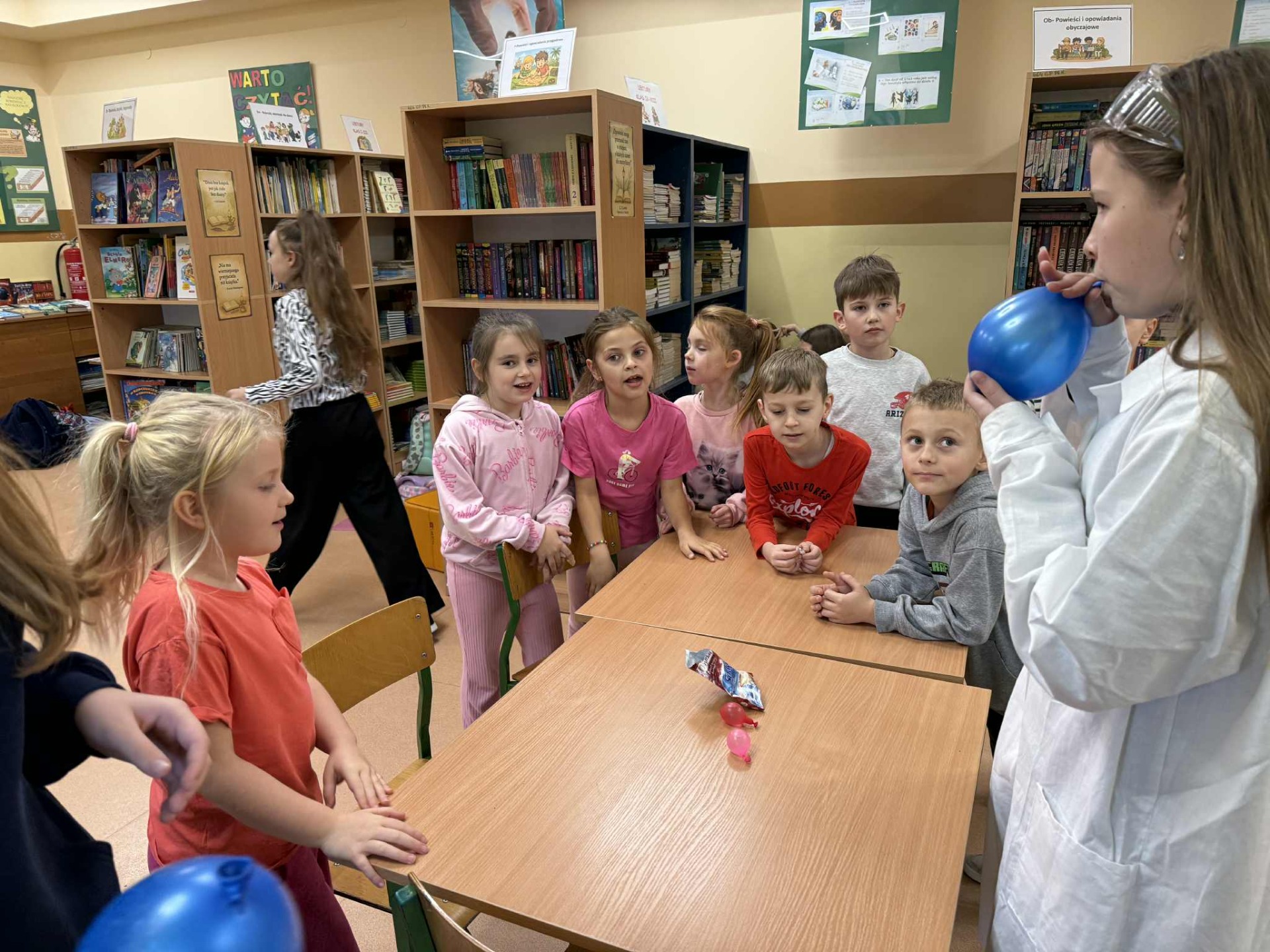 Podczas przerwy śródlekcyjnej Gabrysia z klasy 8 postanowiła podzielić się swoją pasją do nauki i zaprezentowała ciekawy eksperyment fizyczno-chemiczny. W prosty, ale efektowny sposób pokazała, jak wiedza z lekcji może ożyć w praktyce. Do doświadczenia wykorzystała dwa balony, umieszczone jeden w drugim. W jednym znajdował się ocet (kwas octowy), a w drugim soda oczyszczona (wodorowęglan sodu). Gdy jeden z balonów pękł, doszło do reakcji chemicznej pomiędzy tymi substancjami. W jej wyniku powstał gaz – dwutlenek węgla (CO₂). Co się stało dalej? Gaz zaczął wypełniać balon, powodując jego rozszerzenie. To świetny przykład, jak ciśnienie gazu może działać na elastyczne materiały i jak proste składniki z kuchni mogą posłużyć do pokazania praw chemii i fizyki. Eksperyment Gabrysi nie tylko wzbudził zainteresowanie kolegów i koleżanek, ale też pokazał, że nauka może być fascynująca i dostępna dla każdego. Brawo za pomysł i odwagę w dzieleniu się wiedzą!