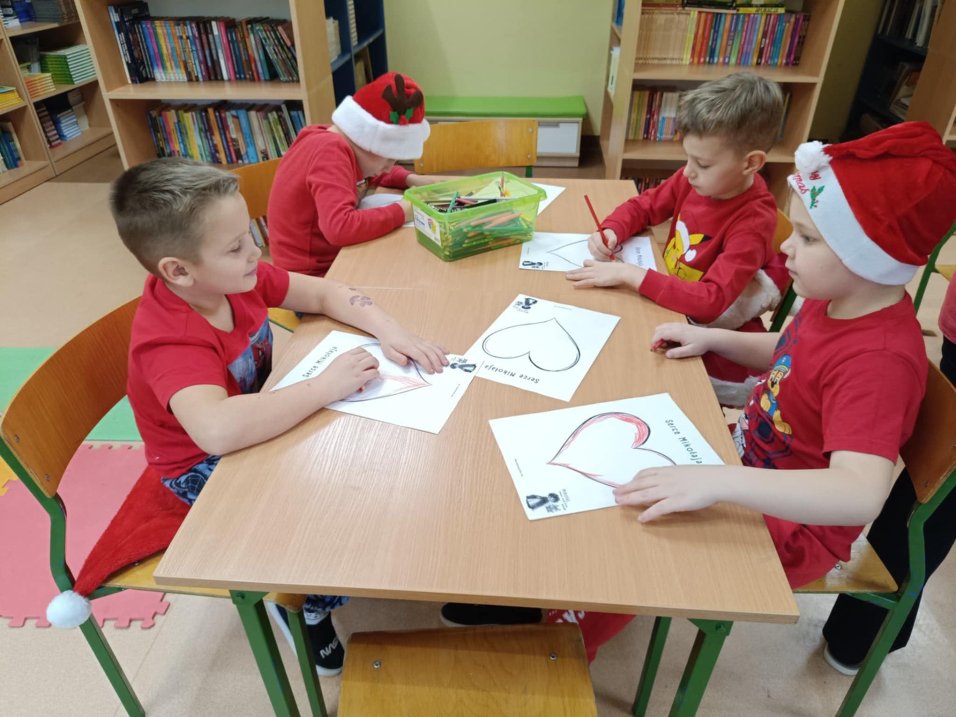 Dzieci odpowiadały na pytania do tekstu, a następnie wykonały pracę plastyczną pt. „Serce Mikołaja.oraz „Mapę dobroci”, pełną pomysłów na pomaganie innym.