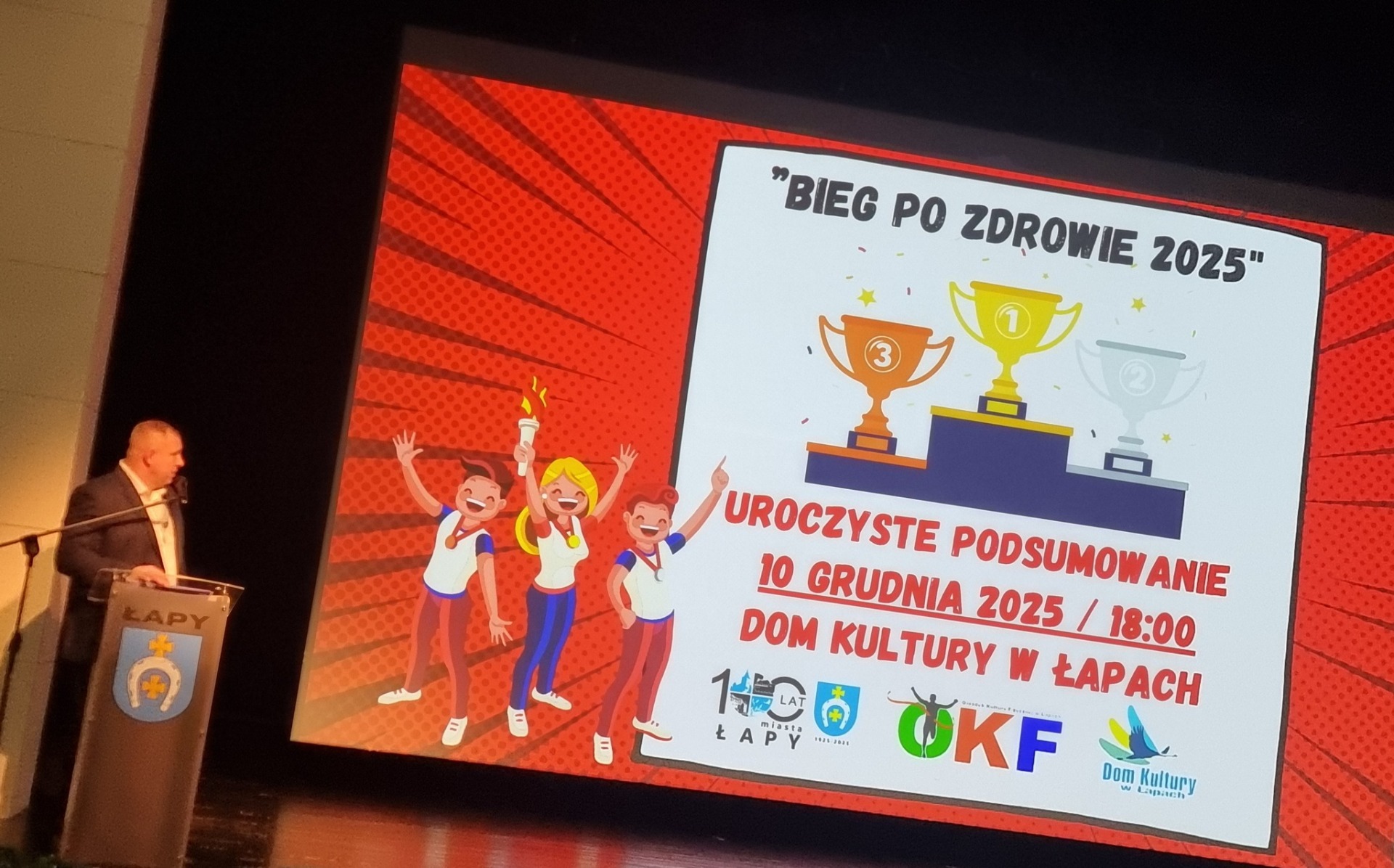 W środę, 10 grudnia, w Domu Kultury w Łapach odbyło się wielkie sportowe święto – finał tegorocznego cyklu „Bieg po zdrowie”, organizowanego przez Ośrodek Kultury Fizycznej w Łapach