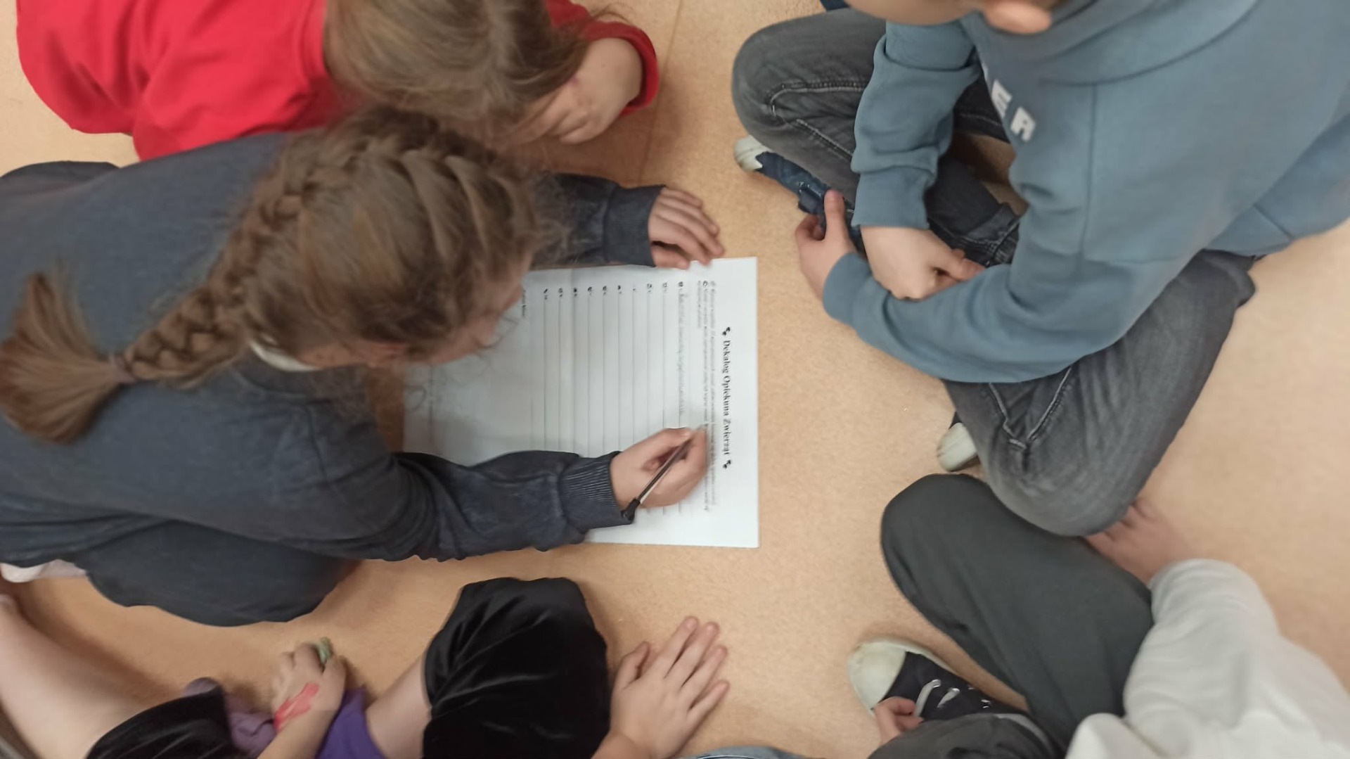 Na zakończenie, pracując w grupach, uczniowie opracowali własny „Dekalog Opiekuna Zwierząt” – zbiór zasad, który pokazał, że dzieci doskonale rozumieją, czym są empatia, troska i odpowiedzialność